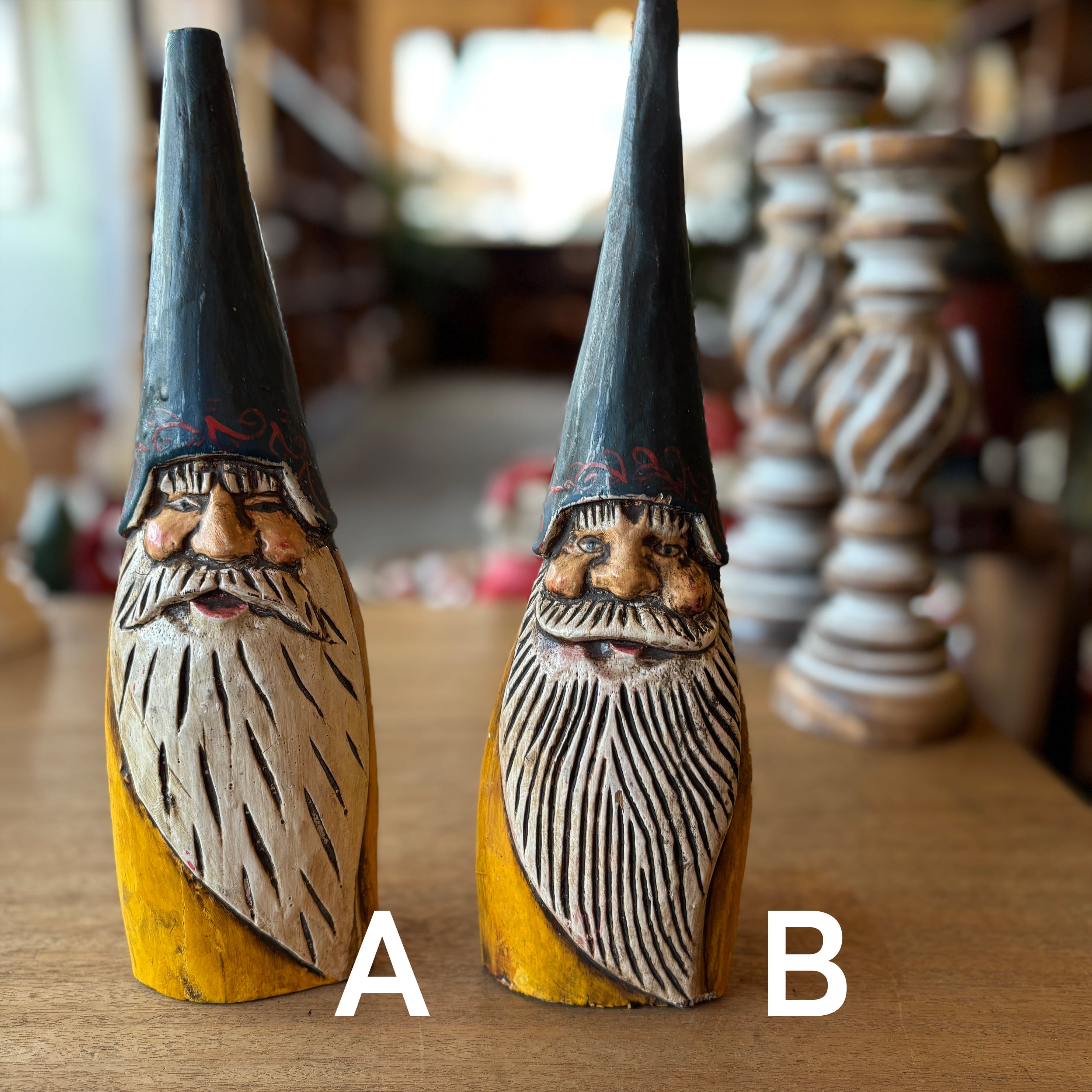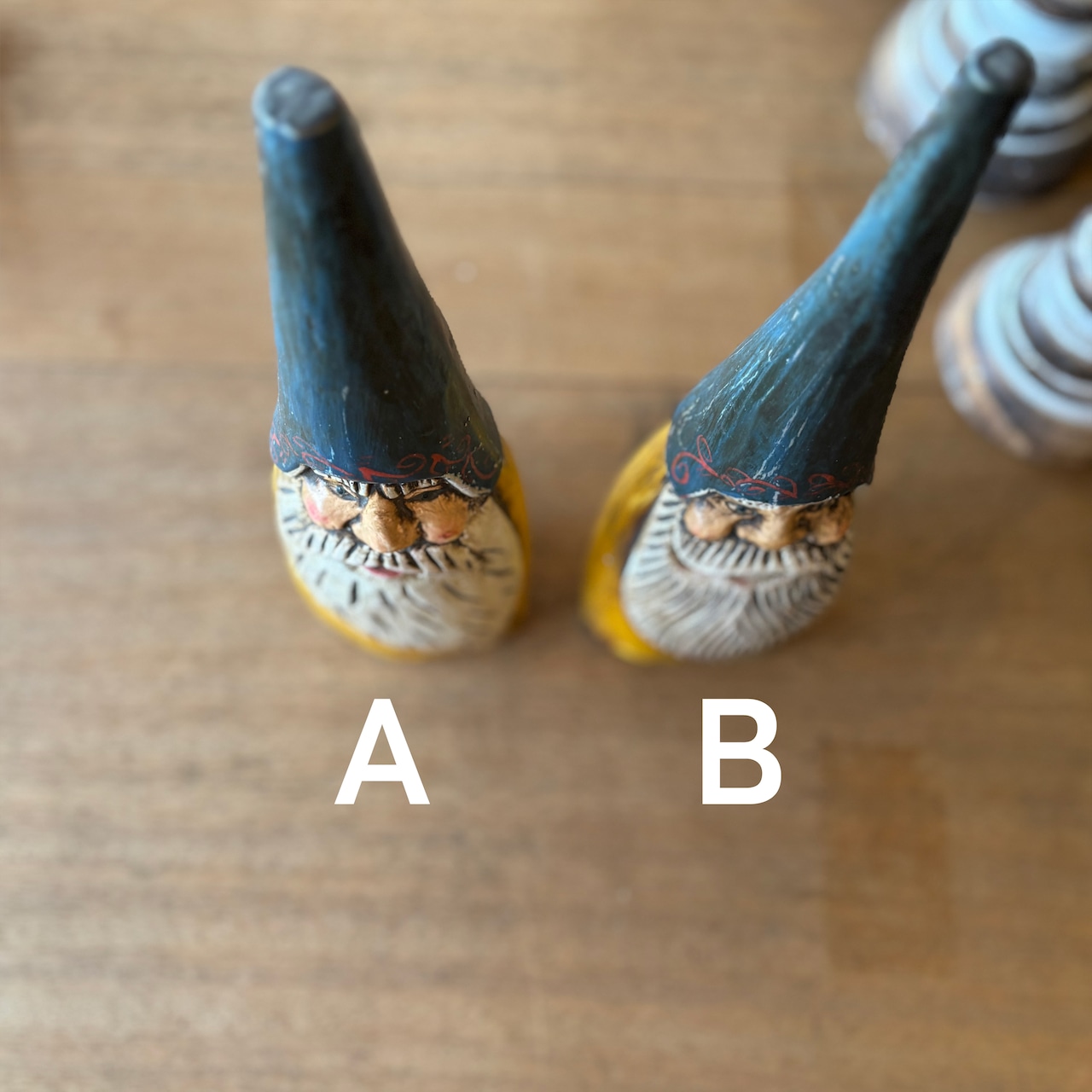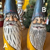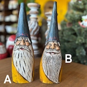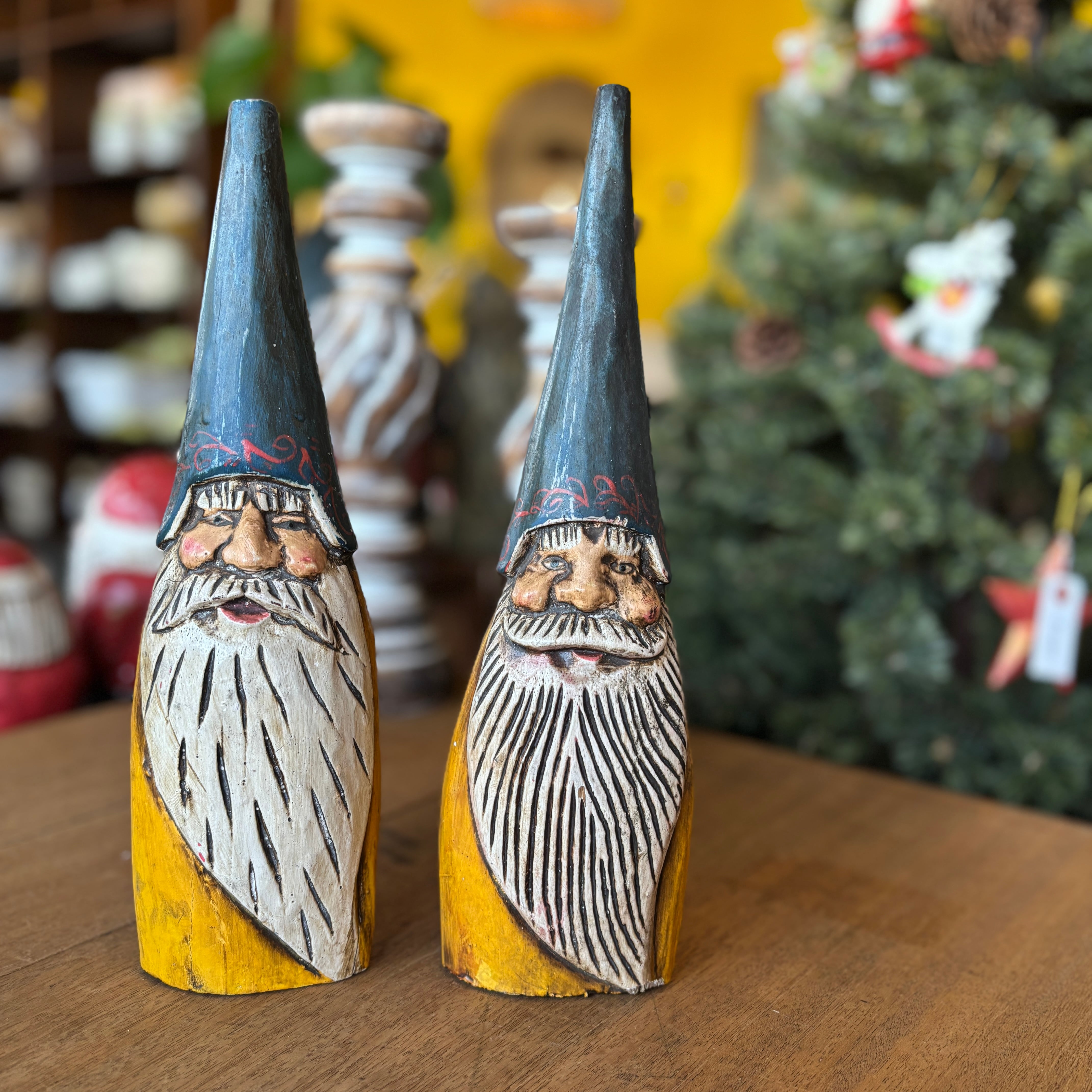 アンティーク感がたまらない青い帽子の木彫りサンタさん。