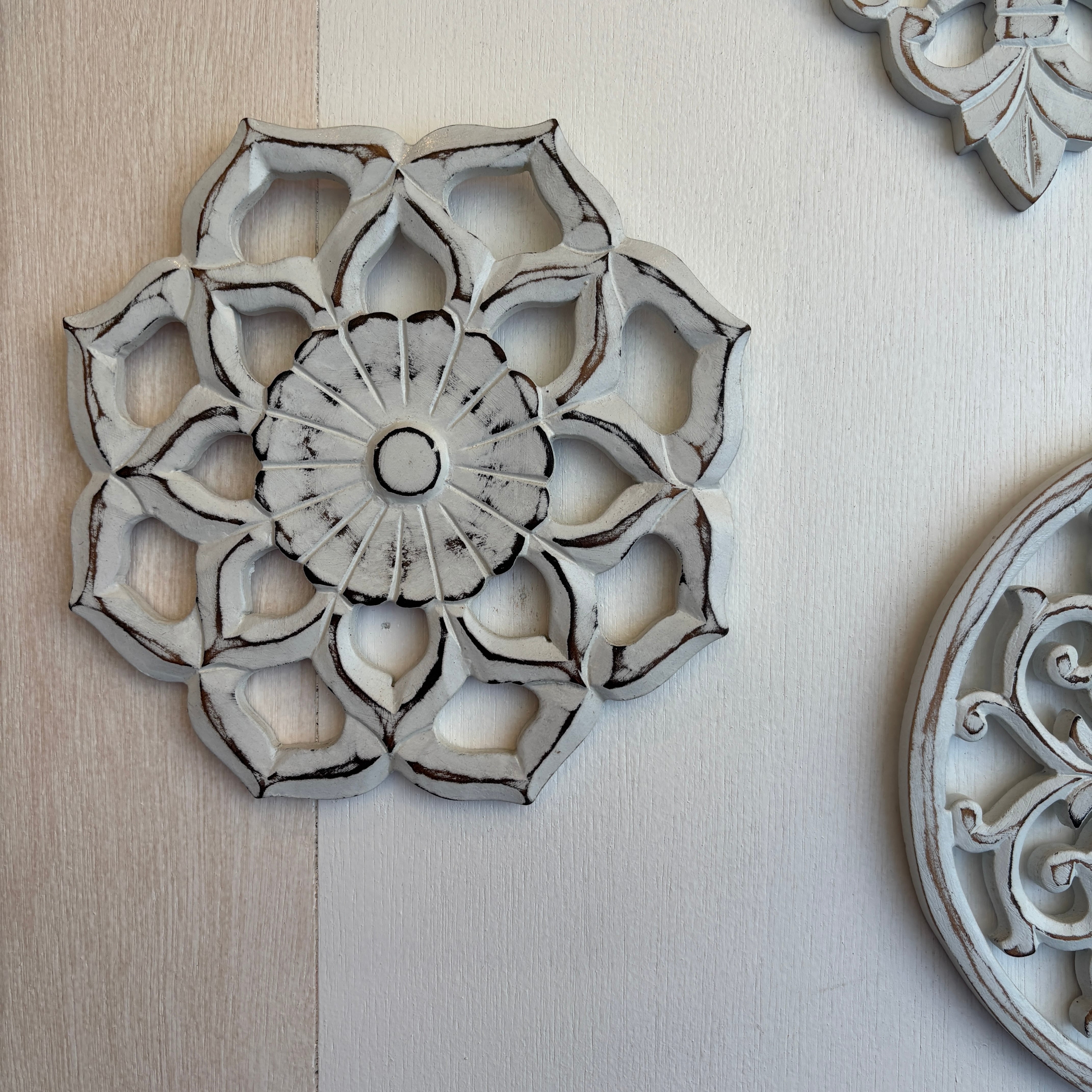 WOOD レリーフ[MANDALA]ホワイト 20cm