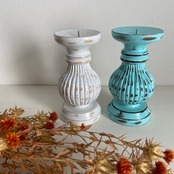 木製 アンティーク風キャンドルスタンド/ホワイト・ターコイズ/16cm