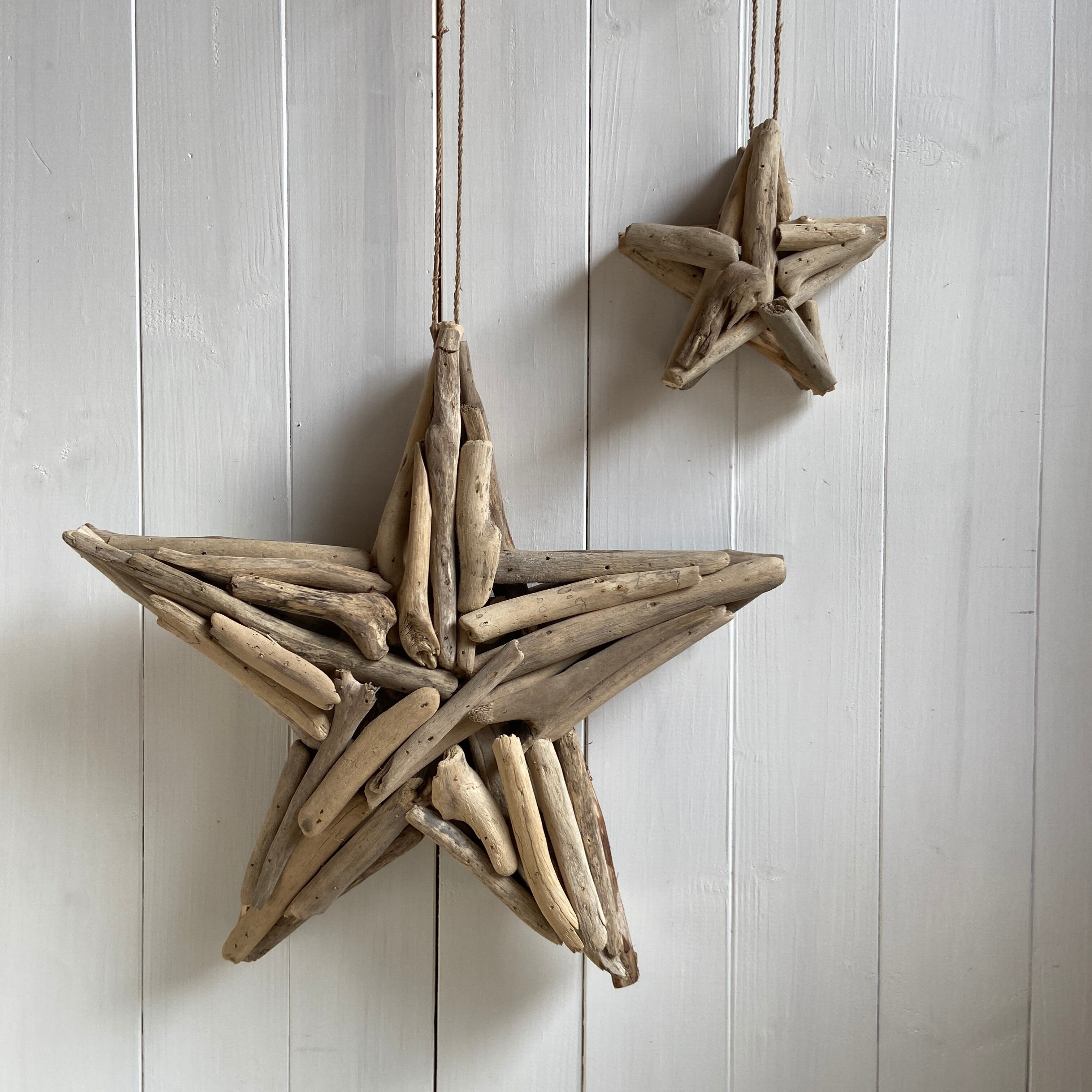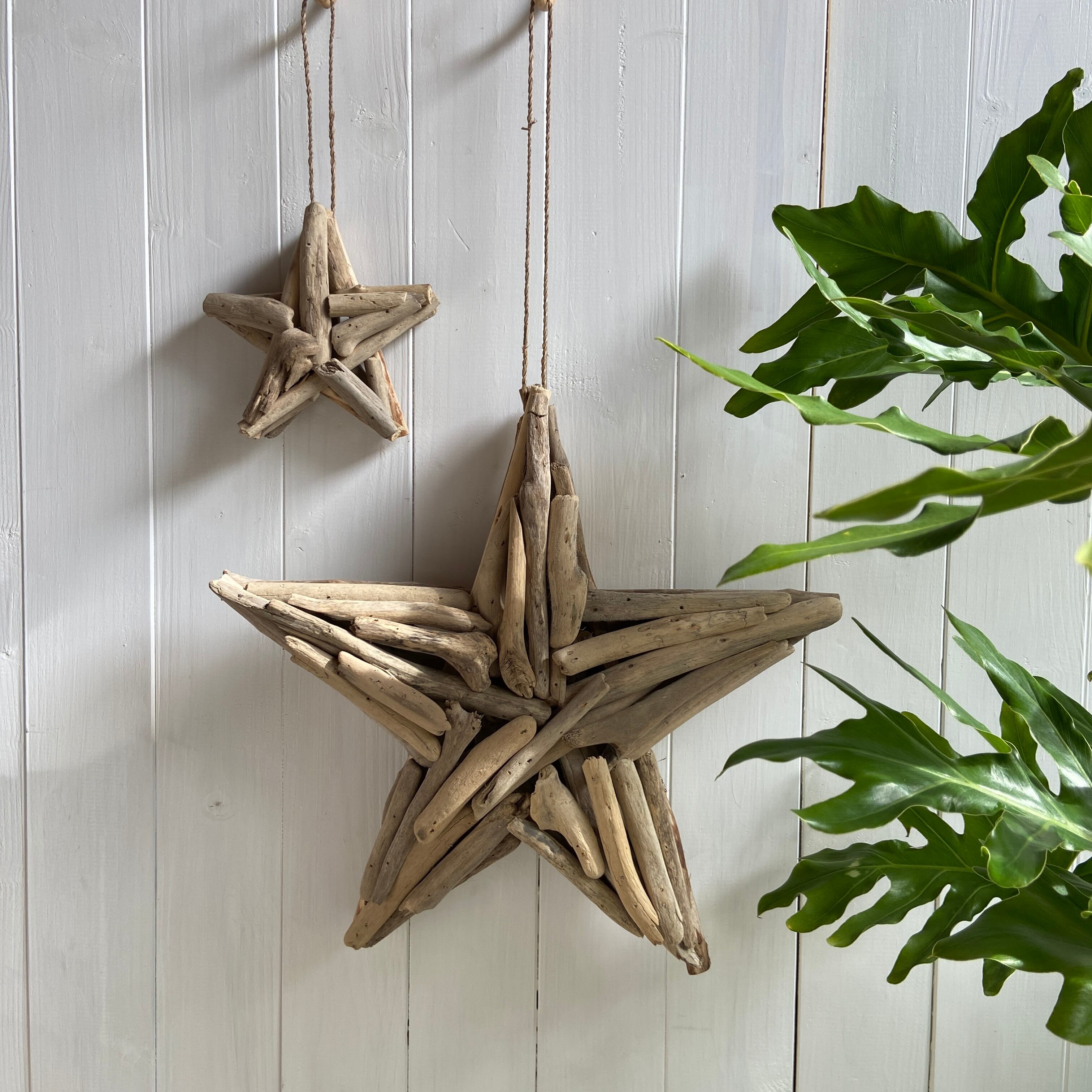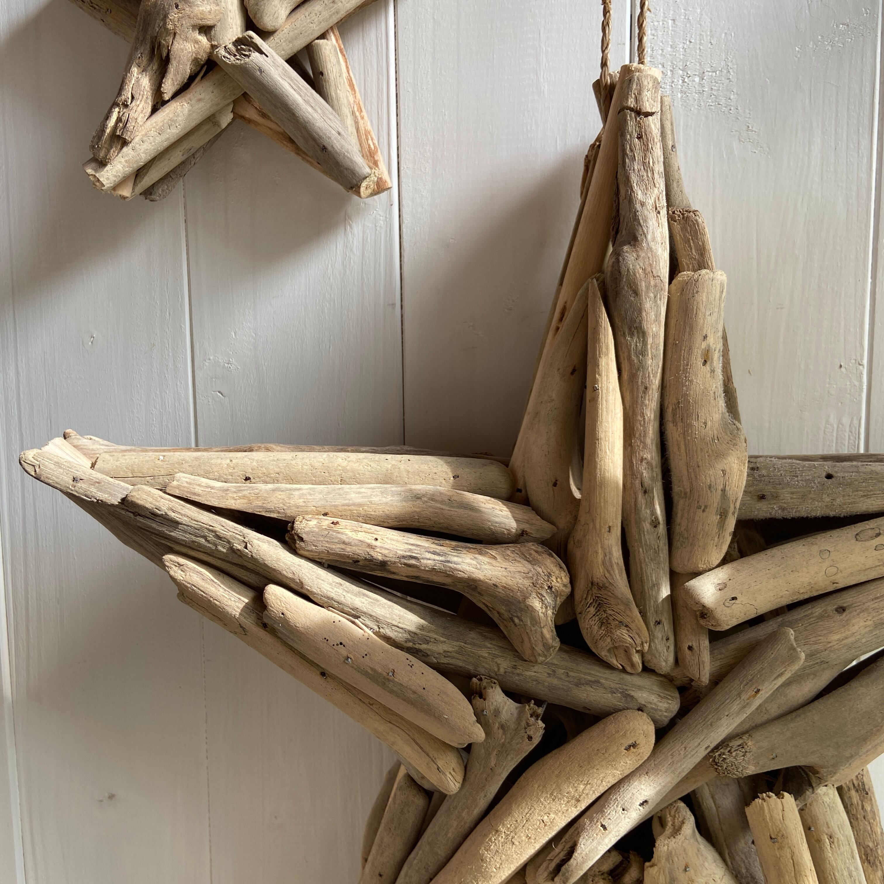 流木をつなぎあわせて作ったお星様のオブジェ。