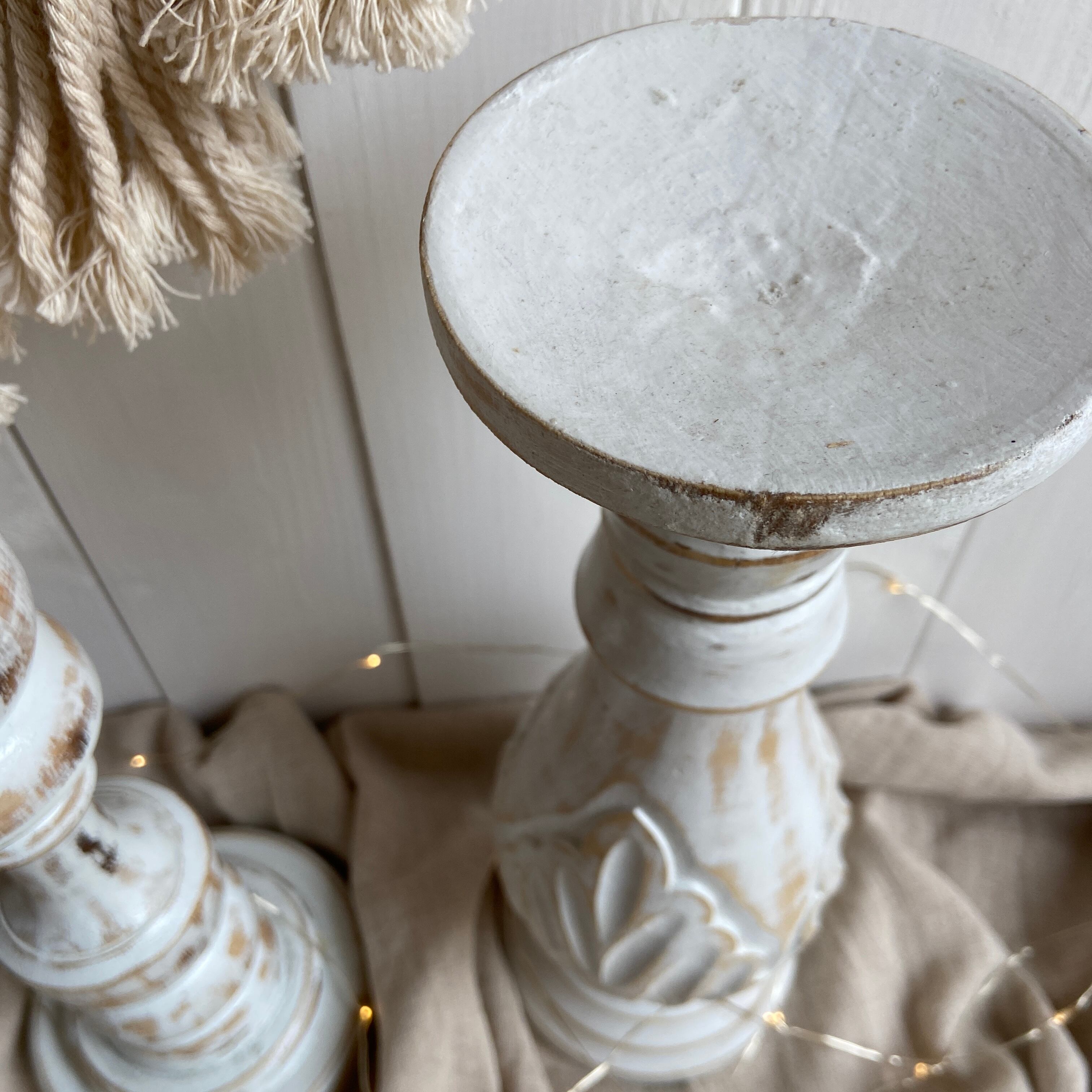ウォッシュ加工を施してアンティーク風の仕上がり。ボタニカルにもBOHOにも合わせ方は自由自在で置くだけでもオブジェになるキャンドルスタンドです。