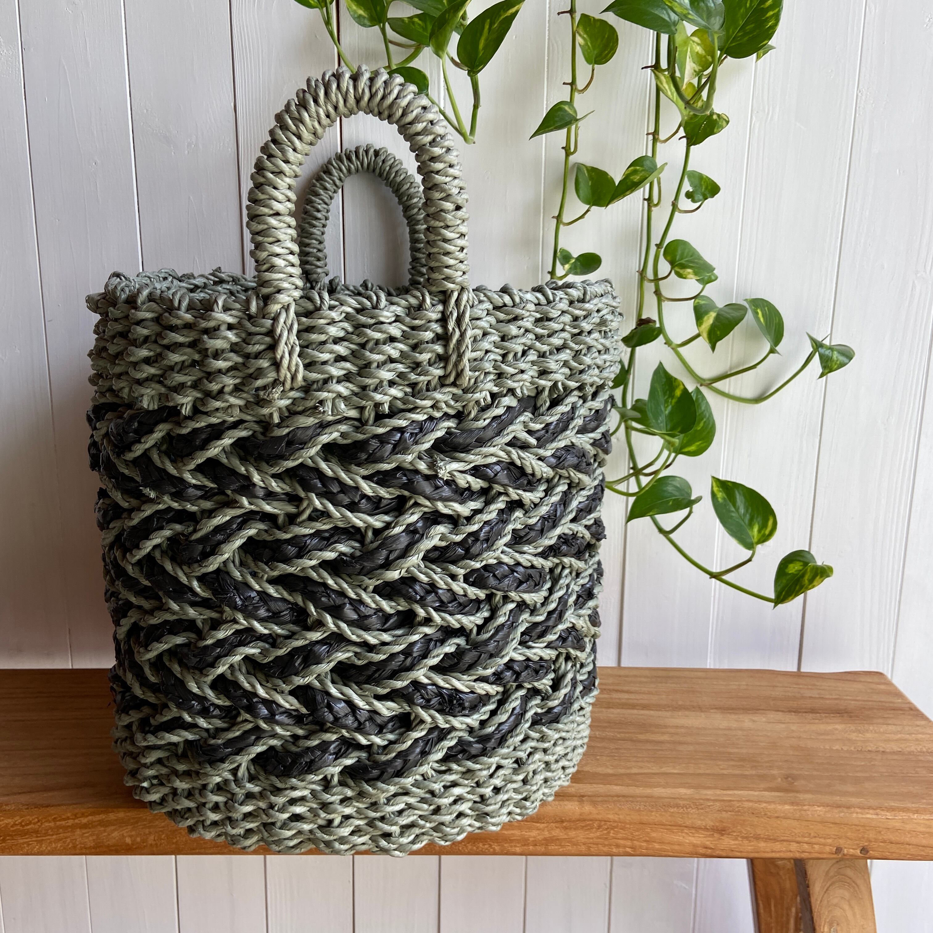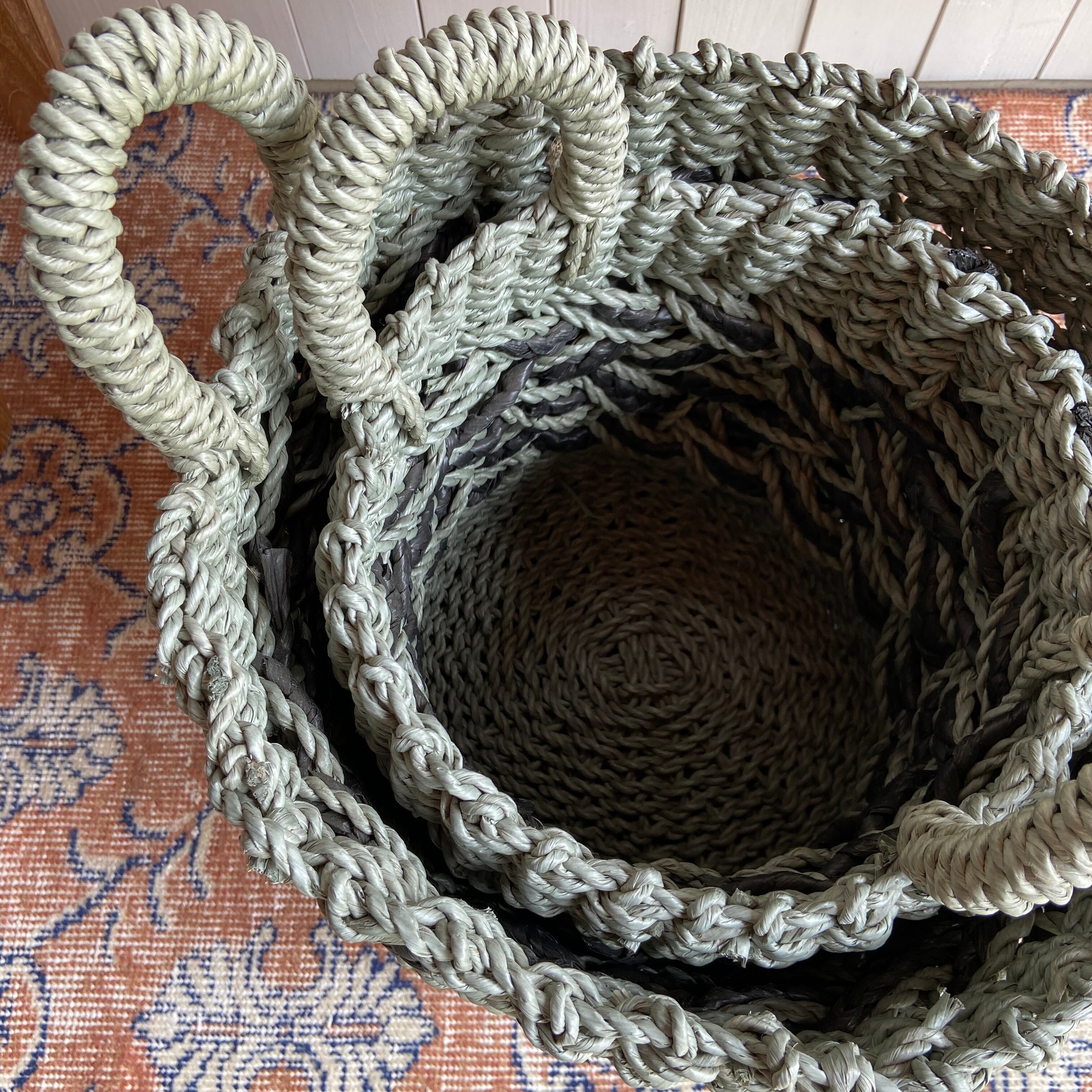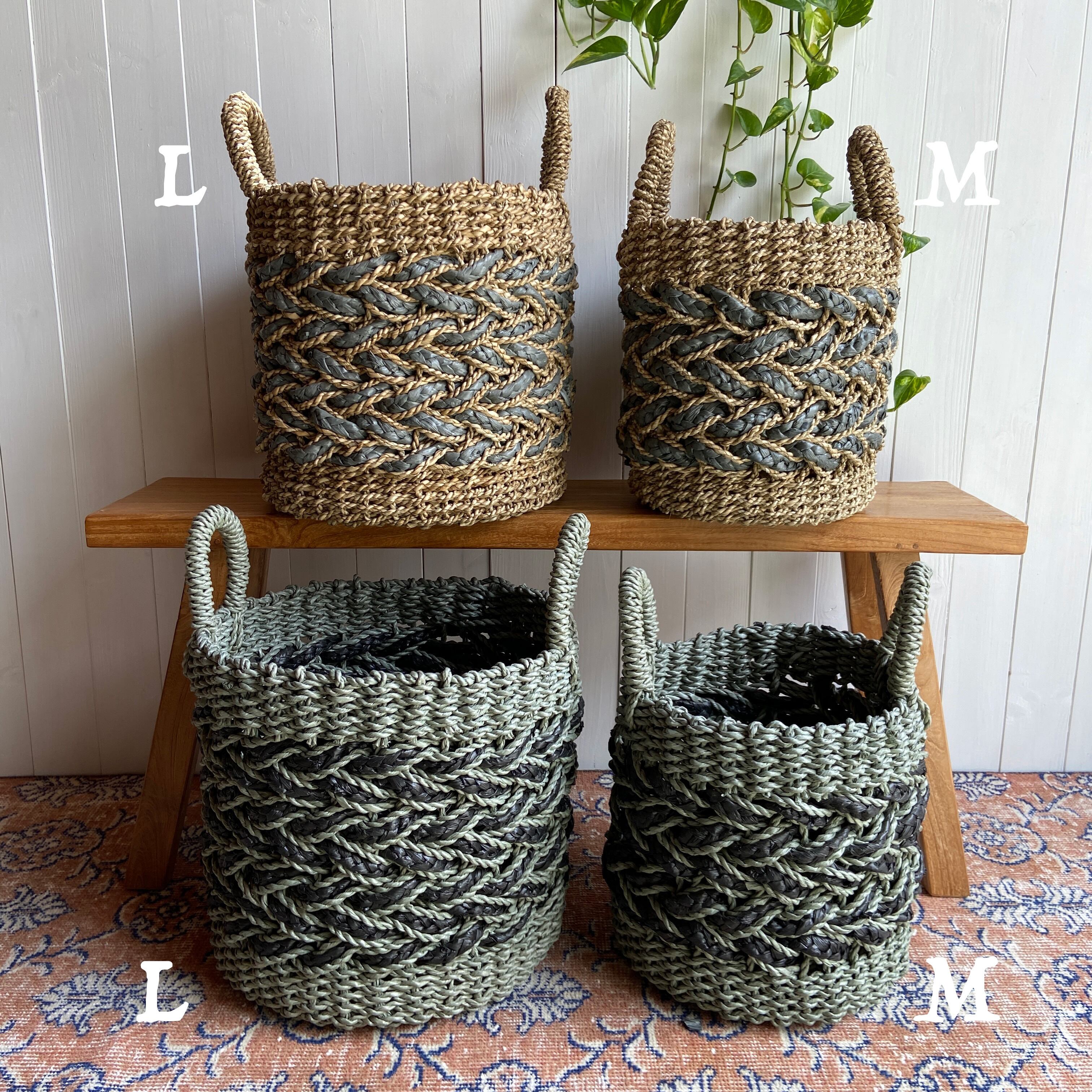 太いブレード編み込みがとっても魅力的なシーグラスバスケット。