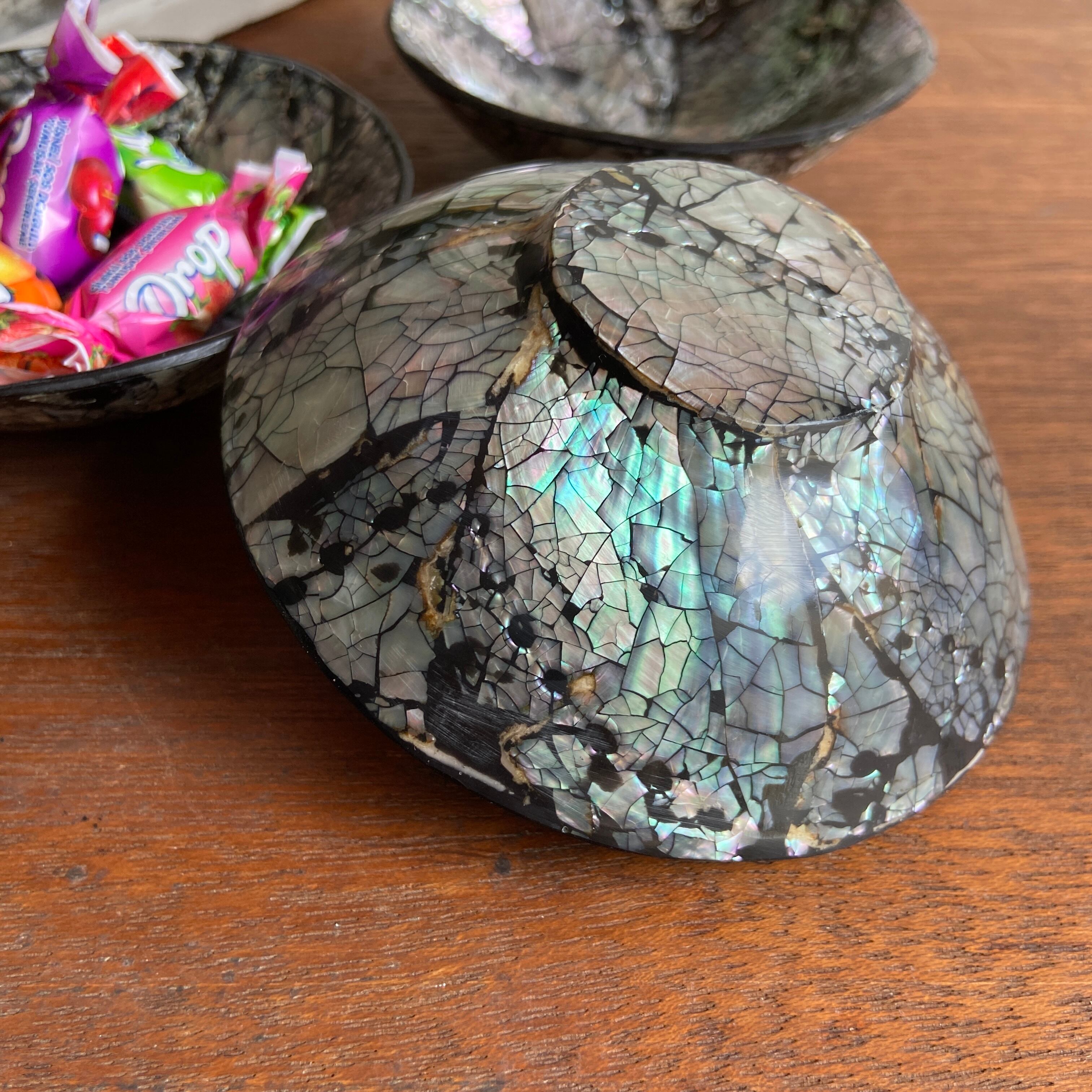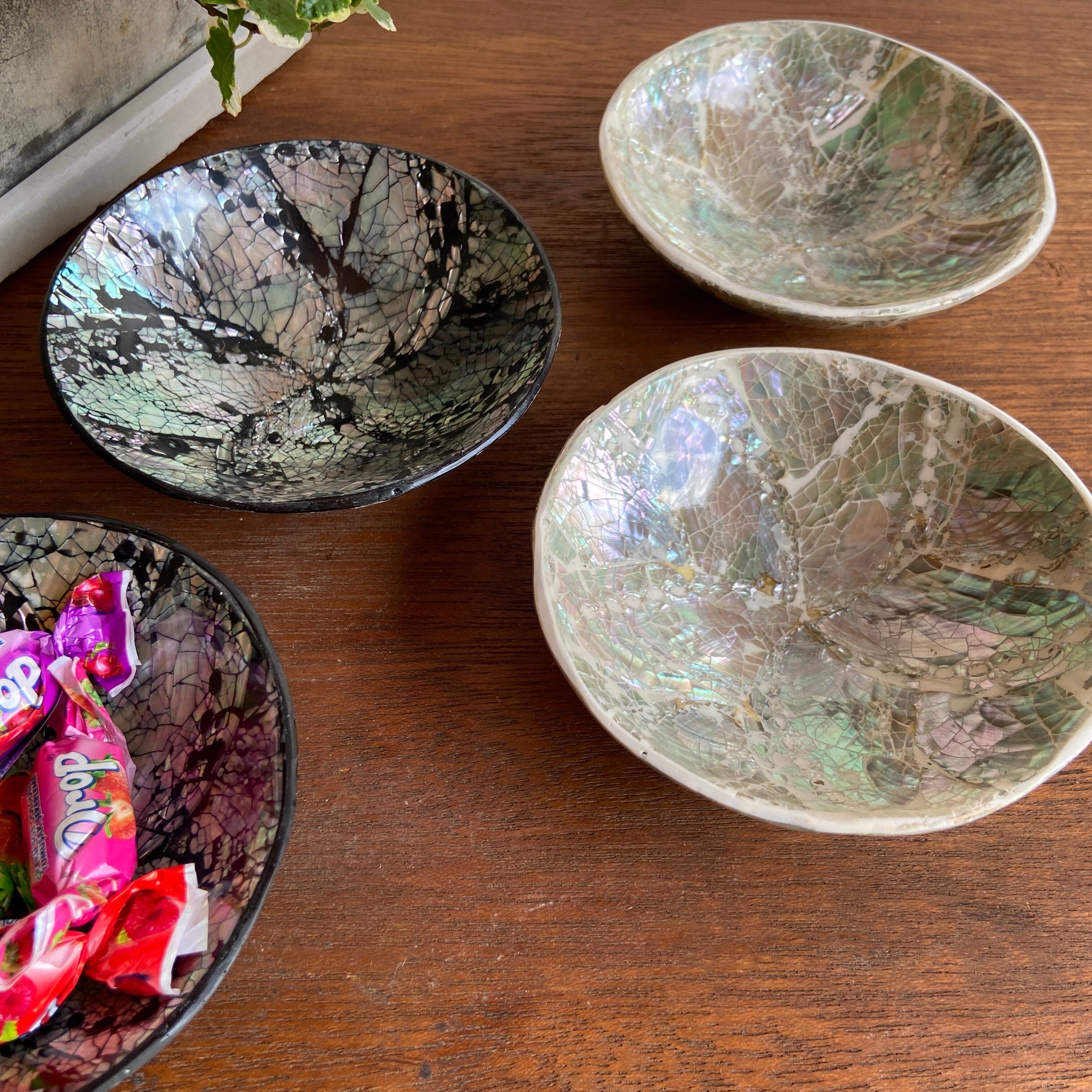 天然パールの貝殻を贅沢に使用した小物入れ。