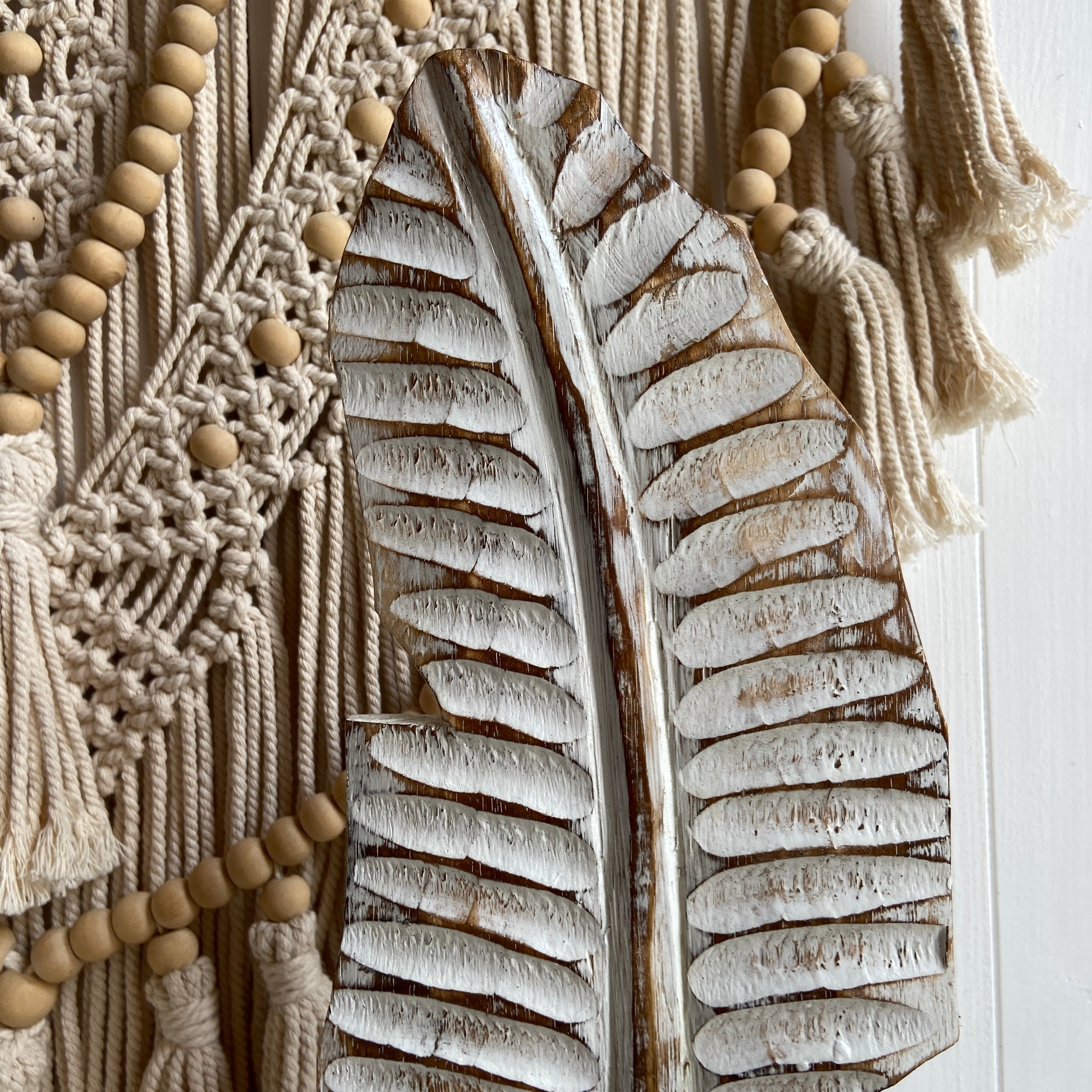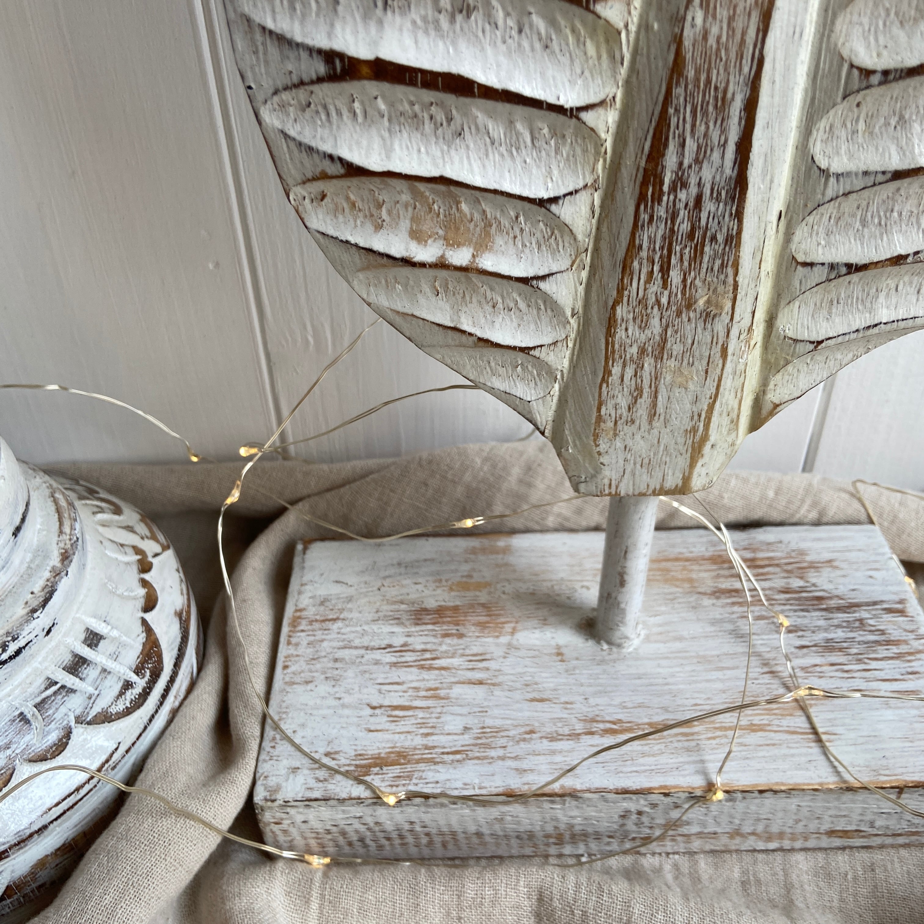 葉っぱをモチーフにした木彫りのオブジェスタンド。