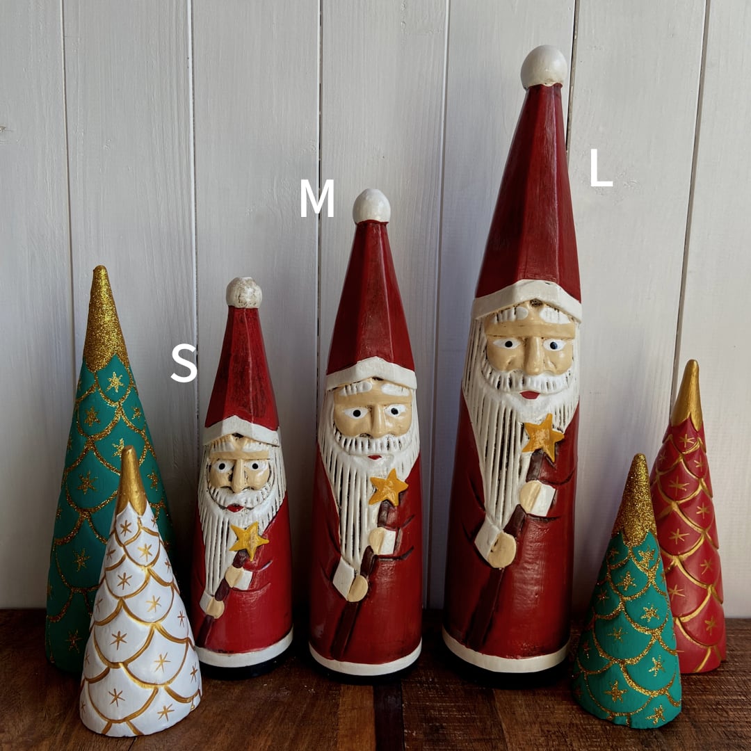 手彫りならではの優しさがあり、素朴でどこかシュールな雰囲気のクリスマスオブジェはPOP UPで人気のシリーズ。アンティーク調に仕上げているので、長い間そこにあったような風合いです。