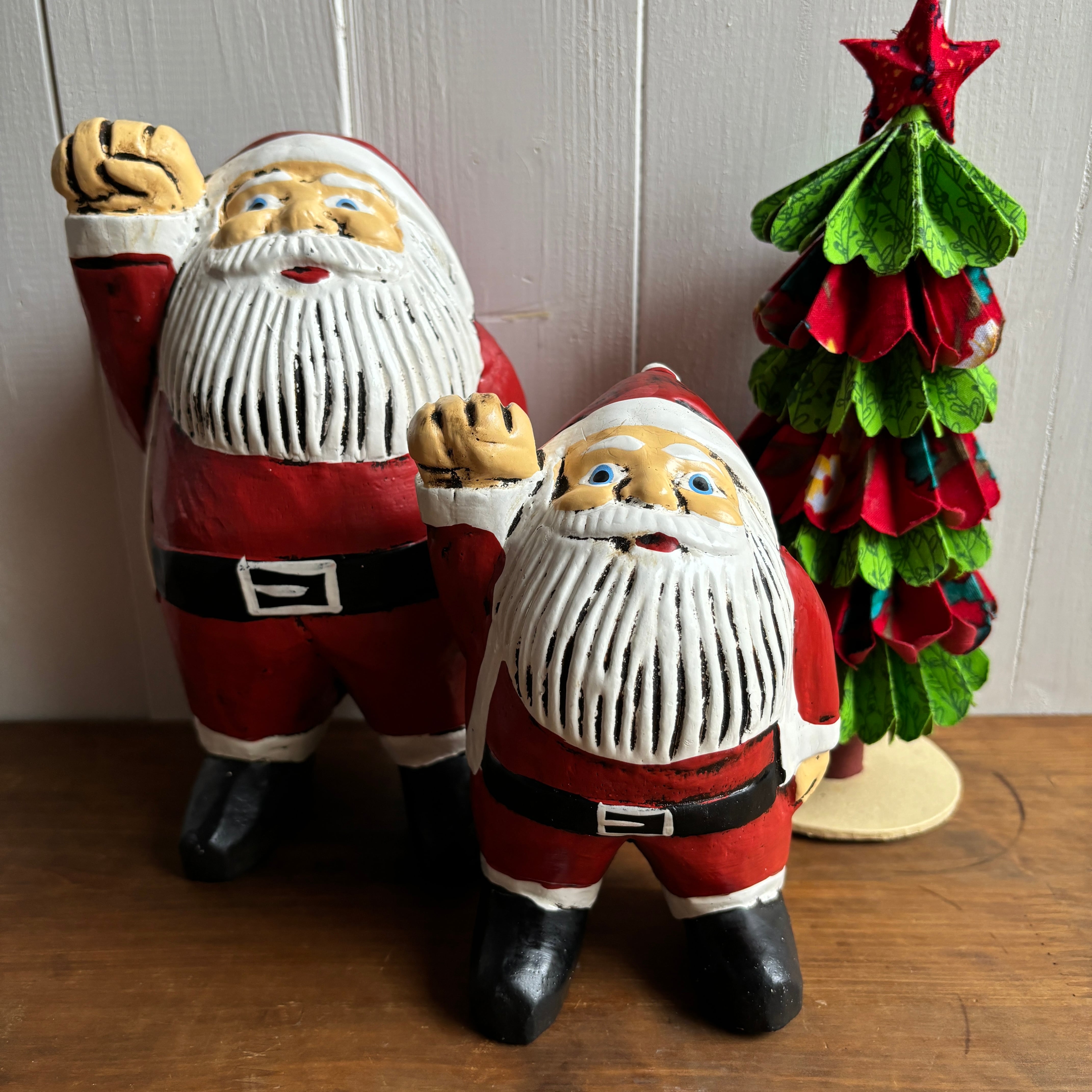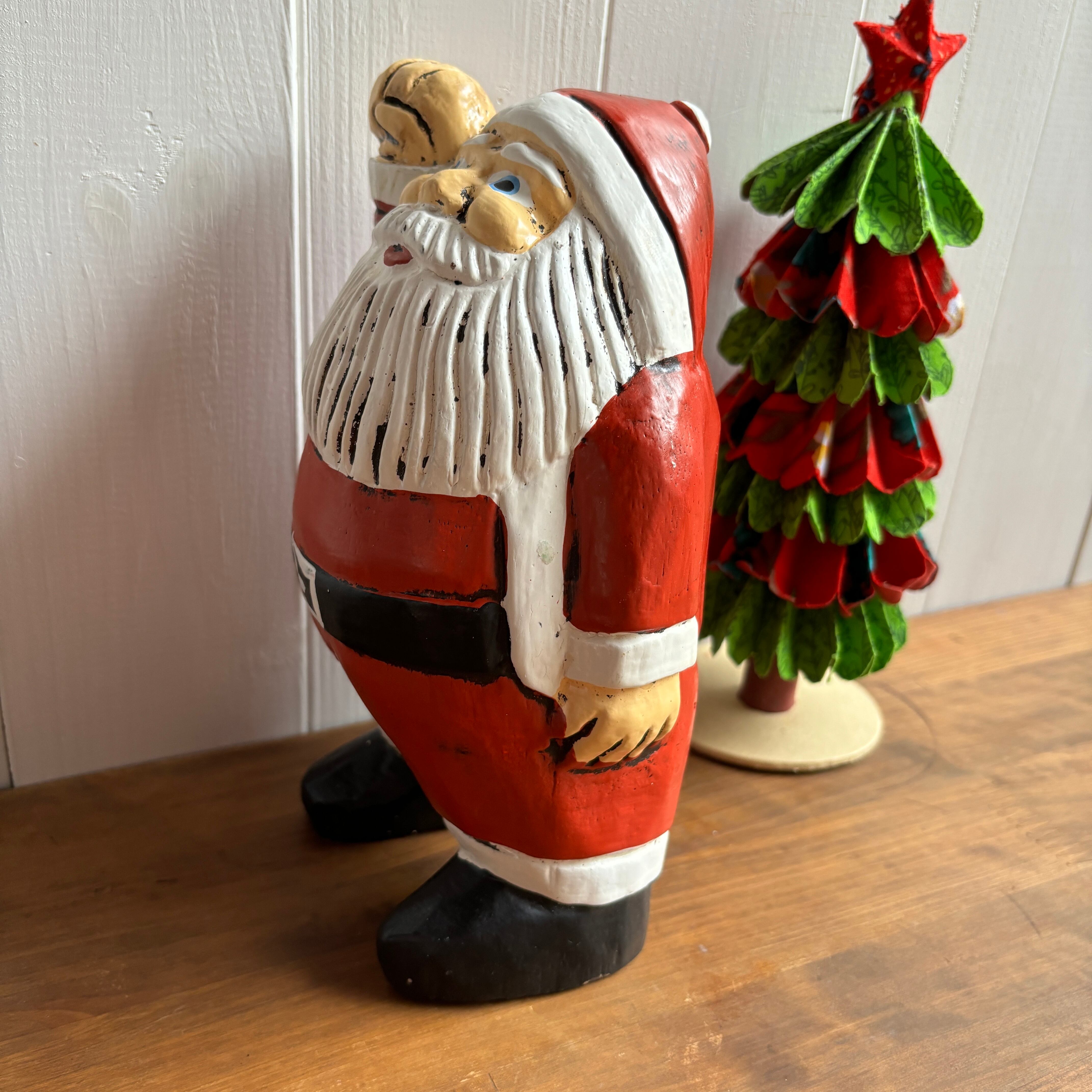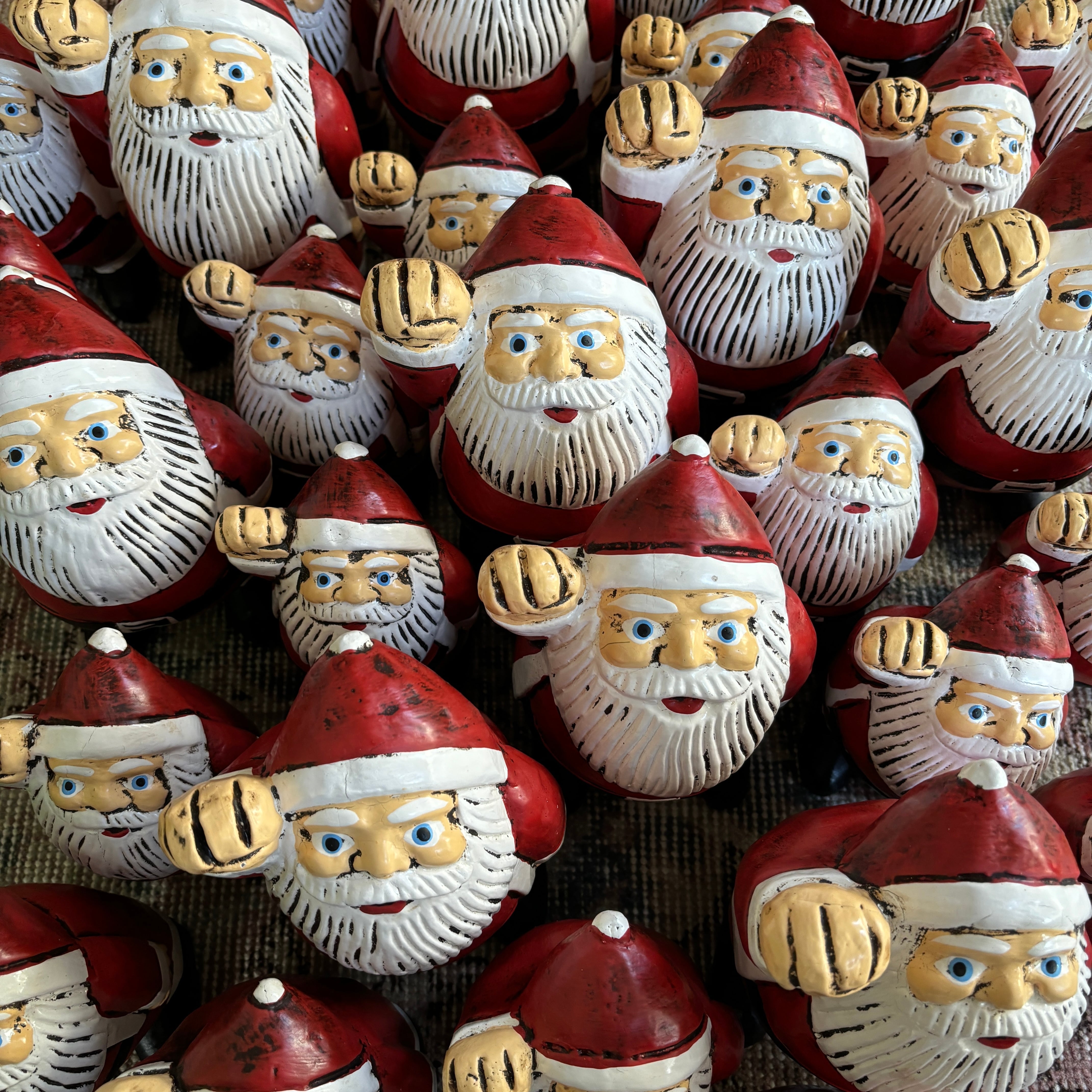 手彫りならではの優しさがあり、素朴でどこかシュールな雰囲気のクリスマスオブジェ。