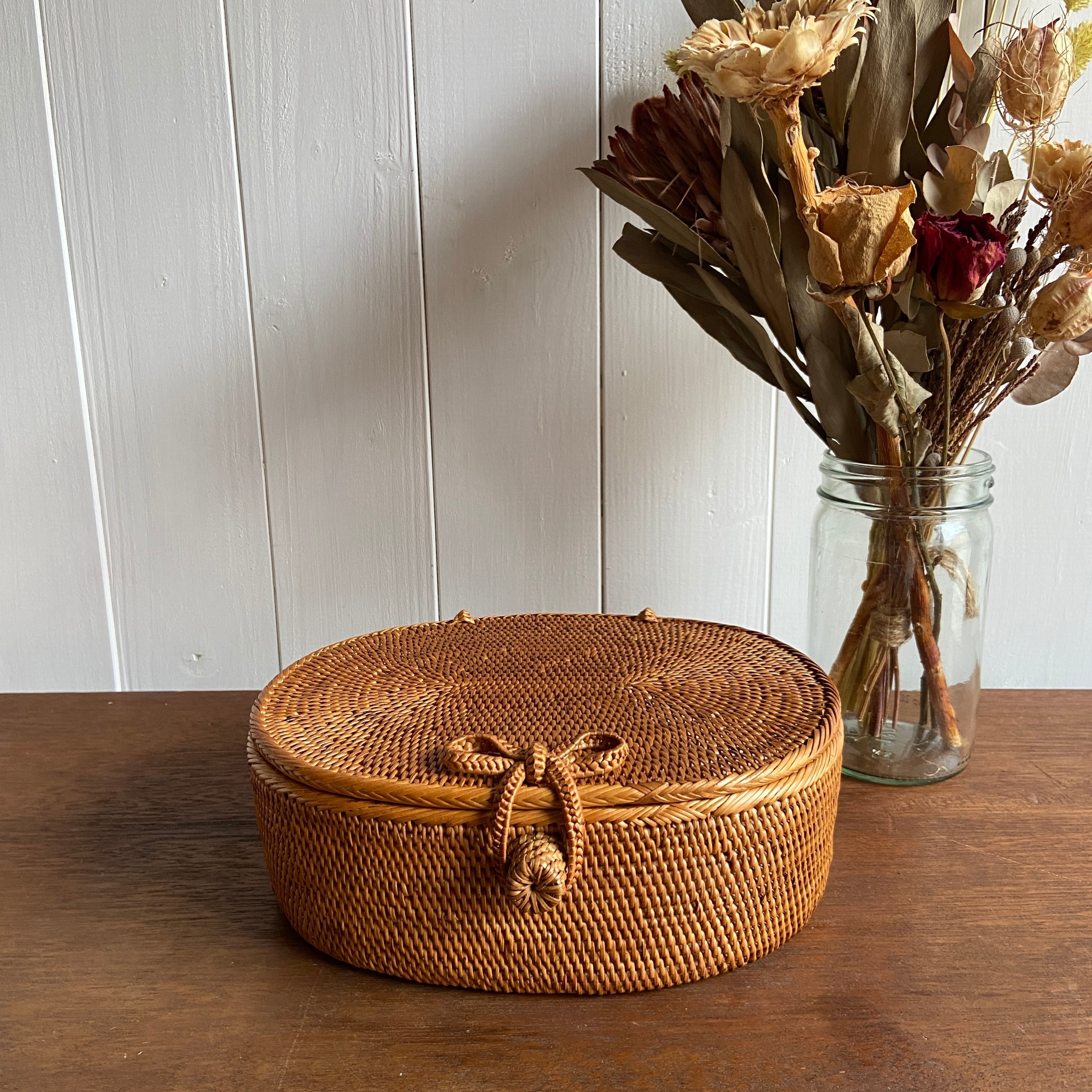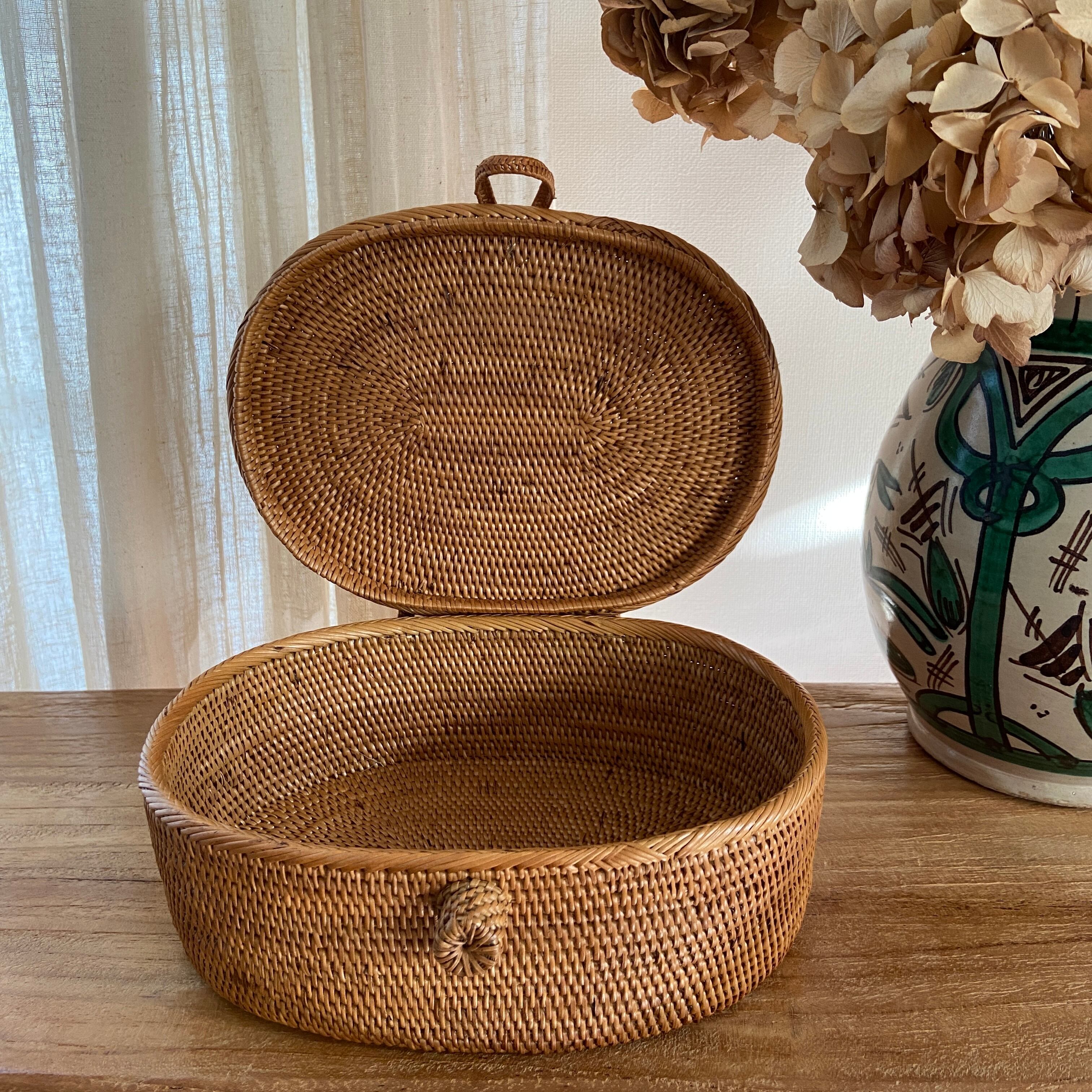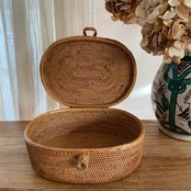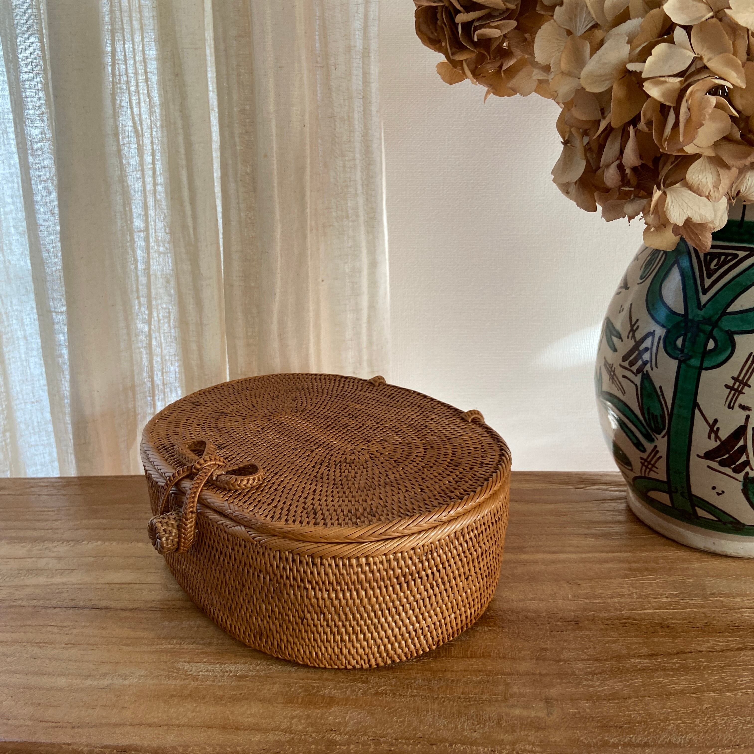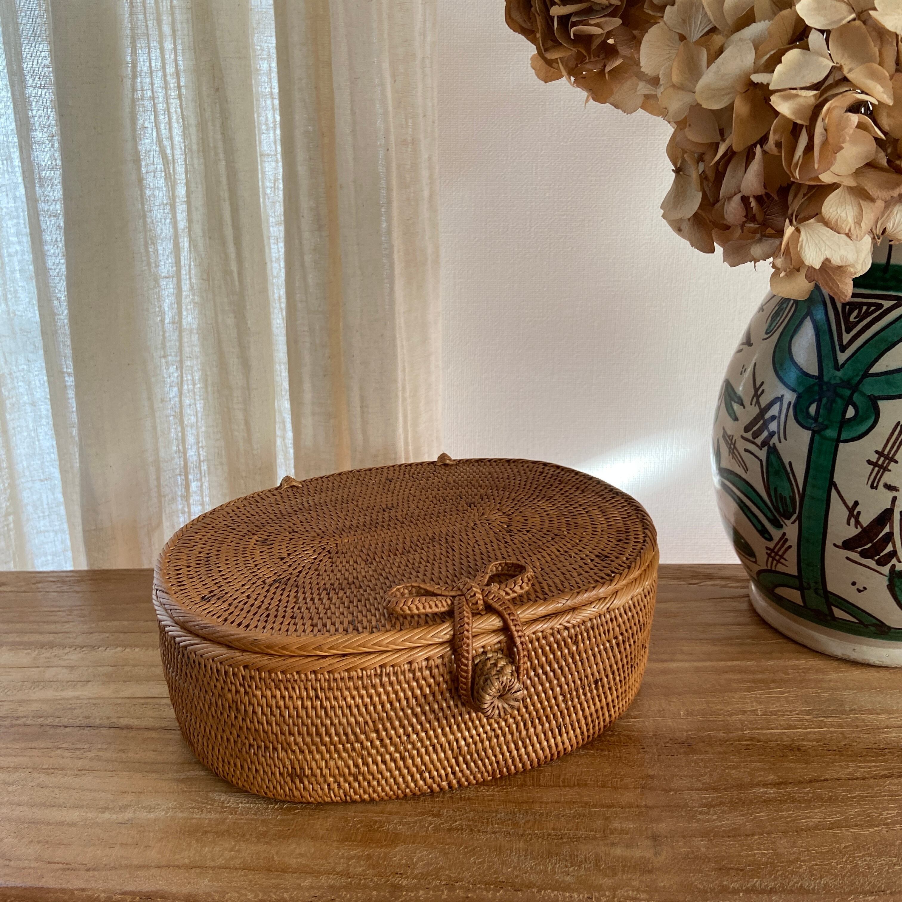 しっかりと丁寧に編まれたこちらの小物入れは、蓋も付いているので大切な時計やアクセサリーを収納するのにもおすすめ!サニタリーBOXとしても上品で素敵なインテリアとしてお楽しみいただけます。