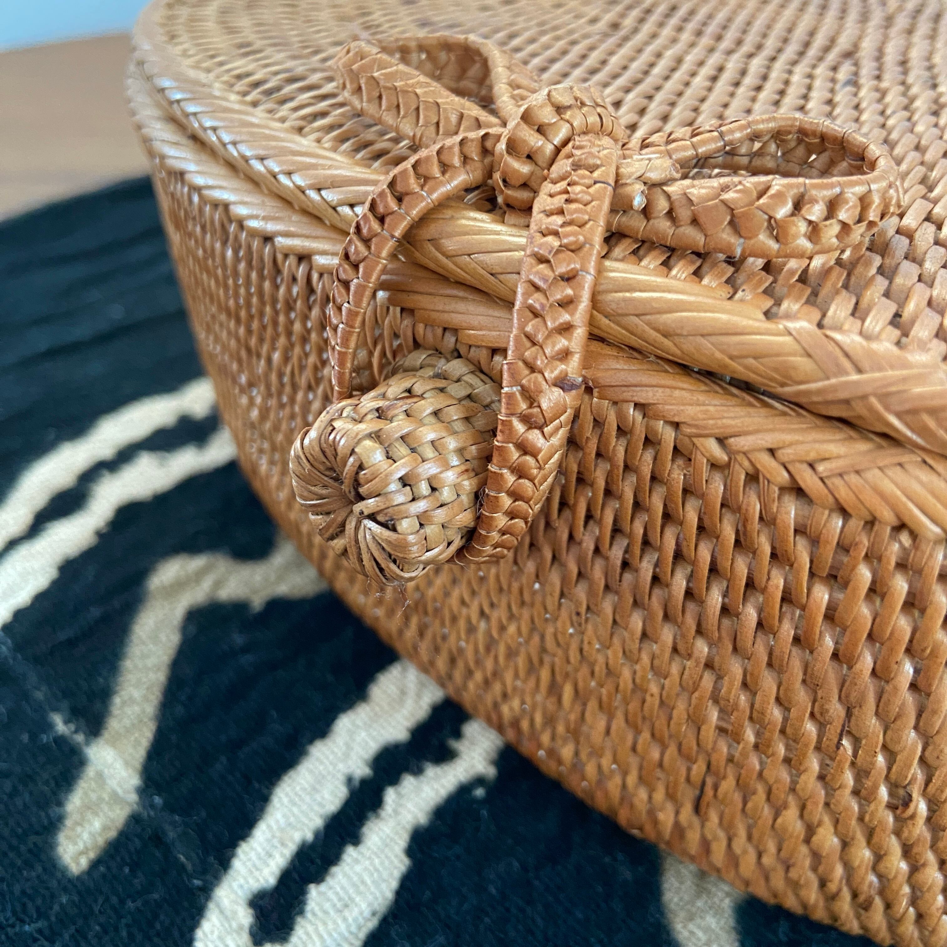 インドネシアに自生するアタのつるを使って職人さんが一つ一つ丁寧に編み込んだ小物入れ。リボンの留め具がとても可愛らしい人気のデザインです。母の日プレゼントとしても人気♡