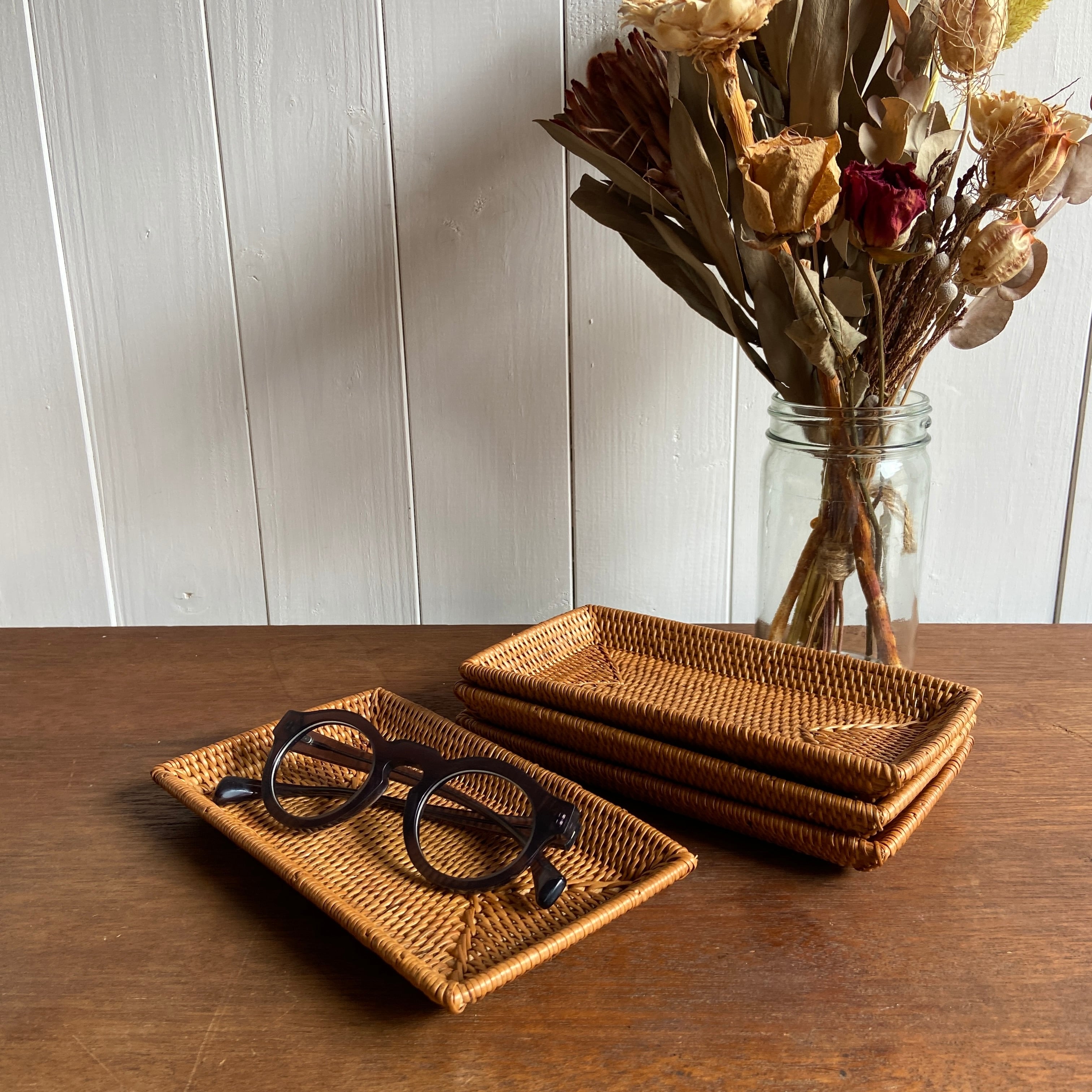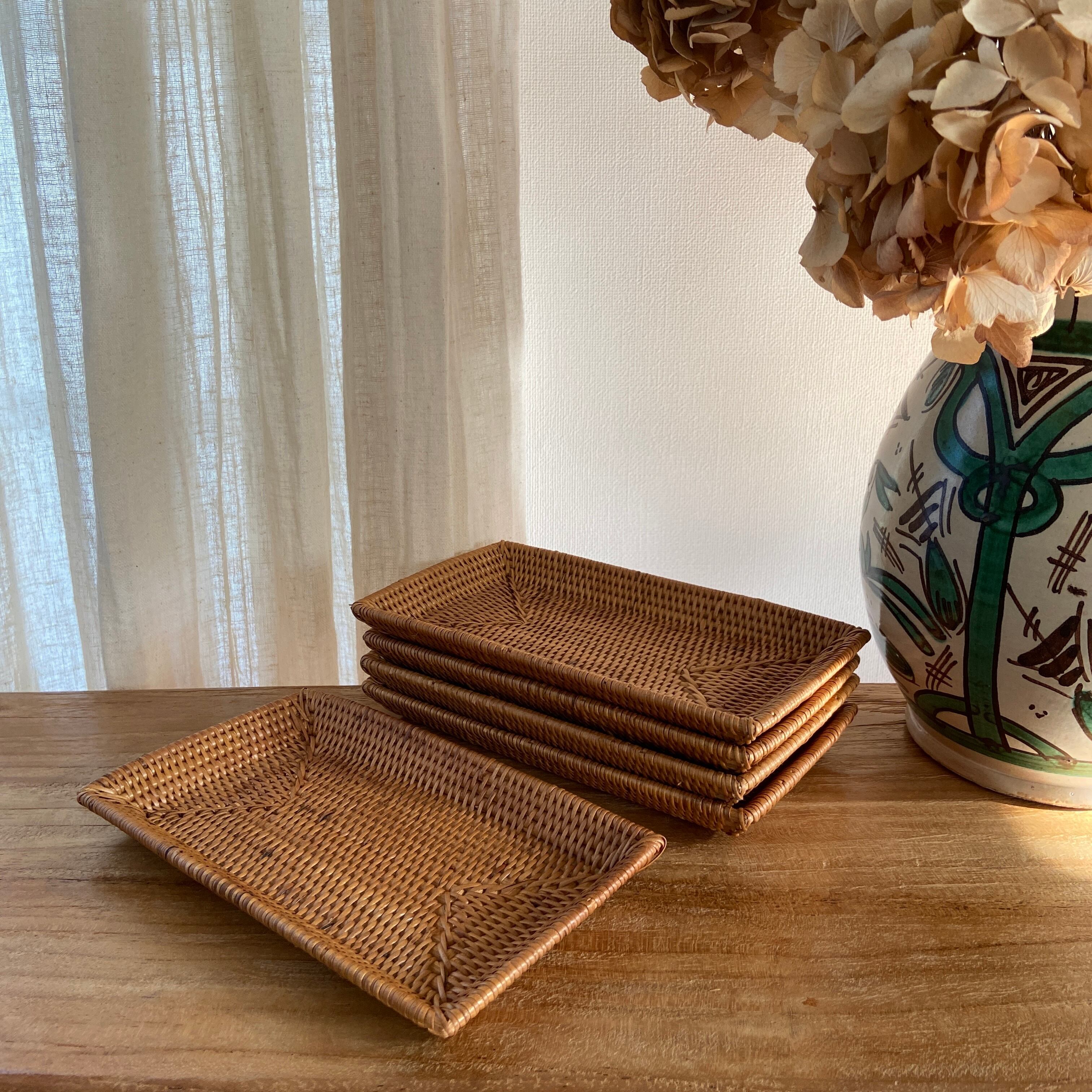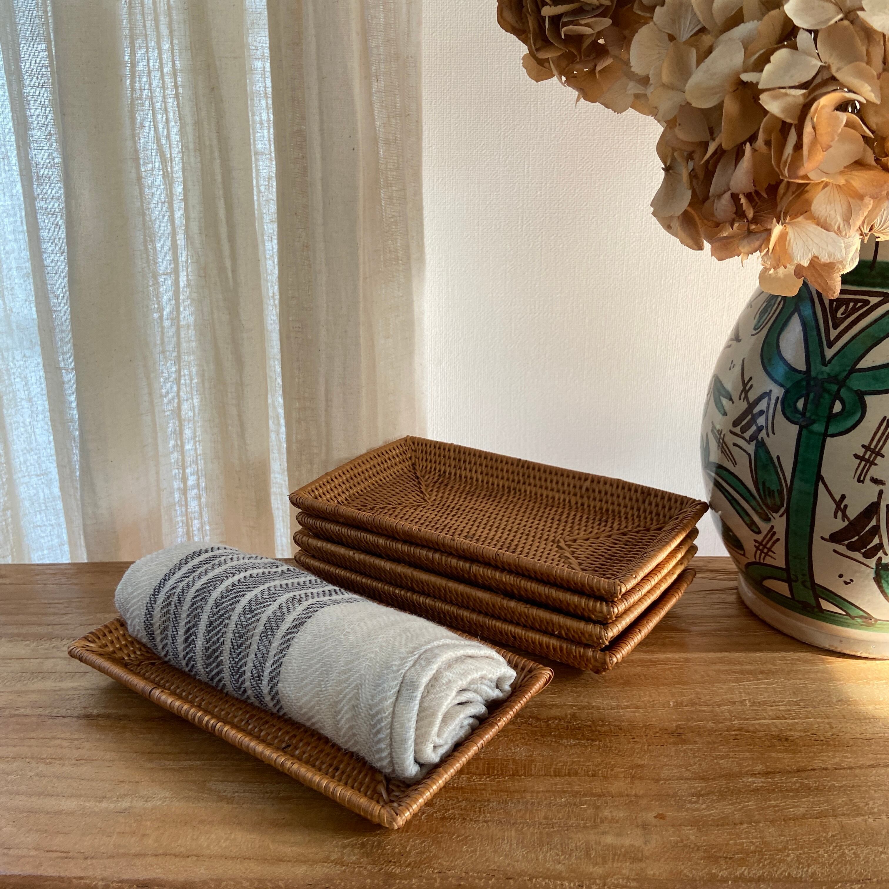 インドネシアに自生するアタのつるを使って職人さんが一つ一つ丁寧に編み込んだおしぼりトレイ。