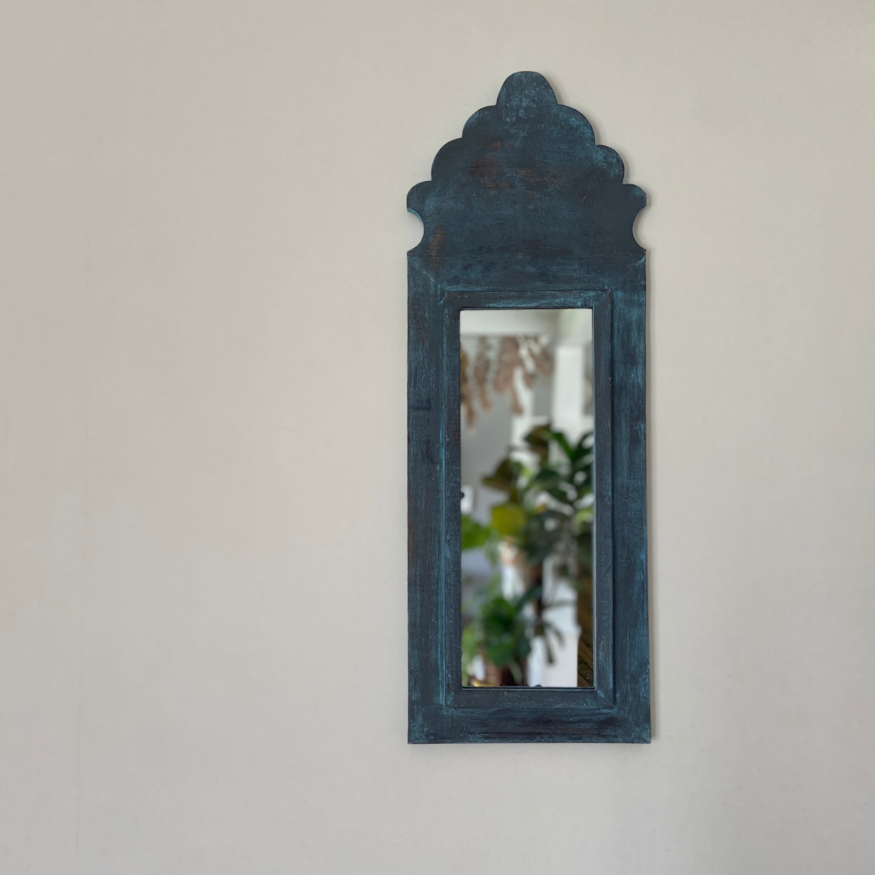ウッド素材をンティーク調に加工したこちらのミラーはボヘミアンスタイルにぴったり。暖かみがある雰囲気はヨーロッパの古い建物やインテリアが好きな方には特におすすめ♡