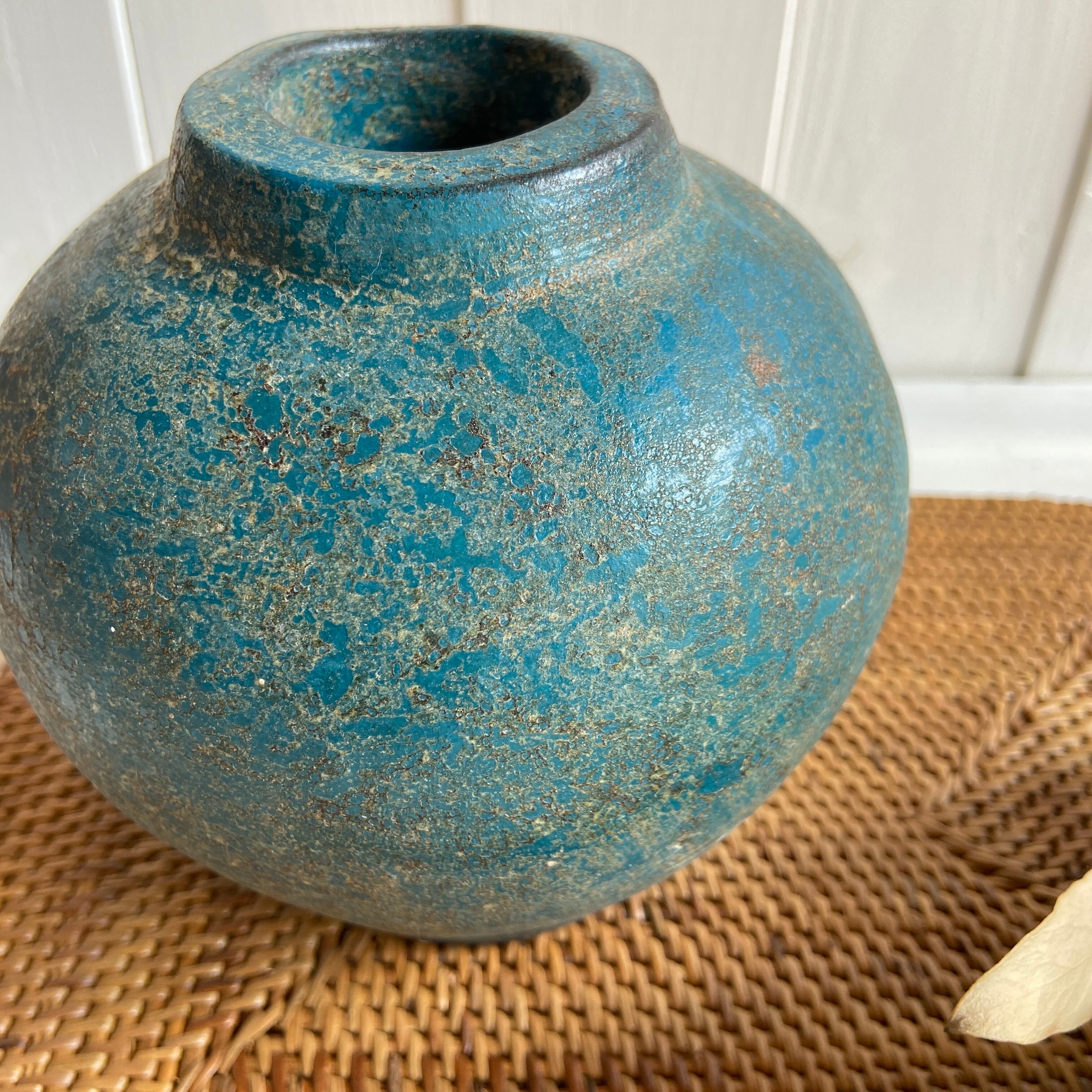 ロンボク焼きの素焼テラコッタをビンテージ感漂う塗装で仕上げました。