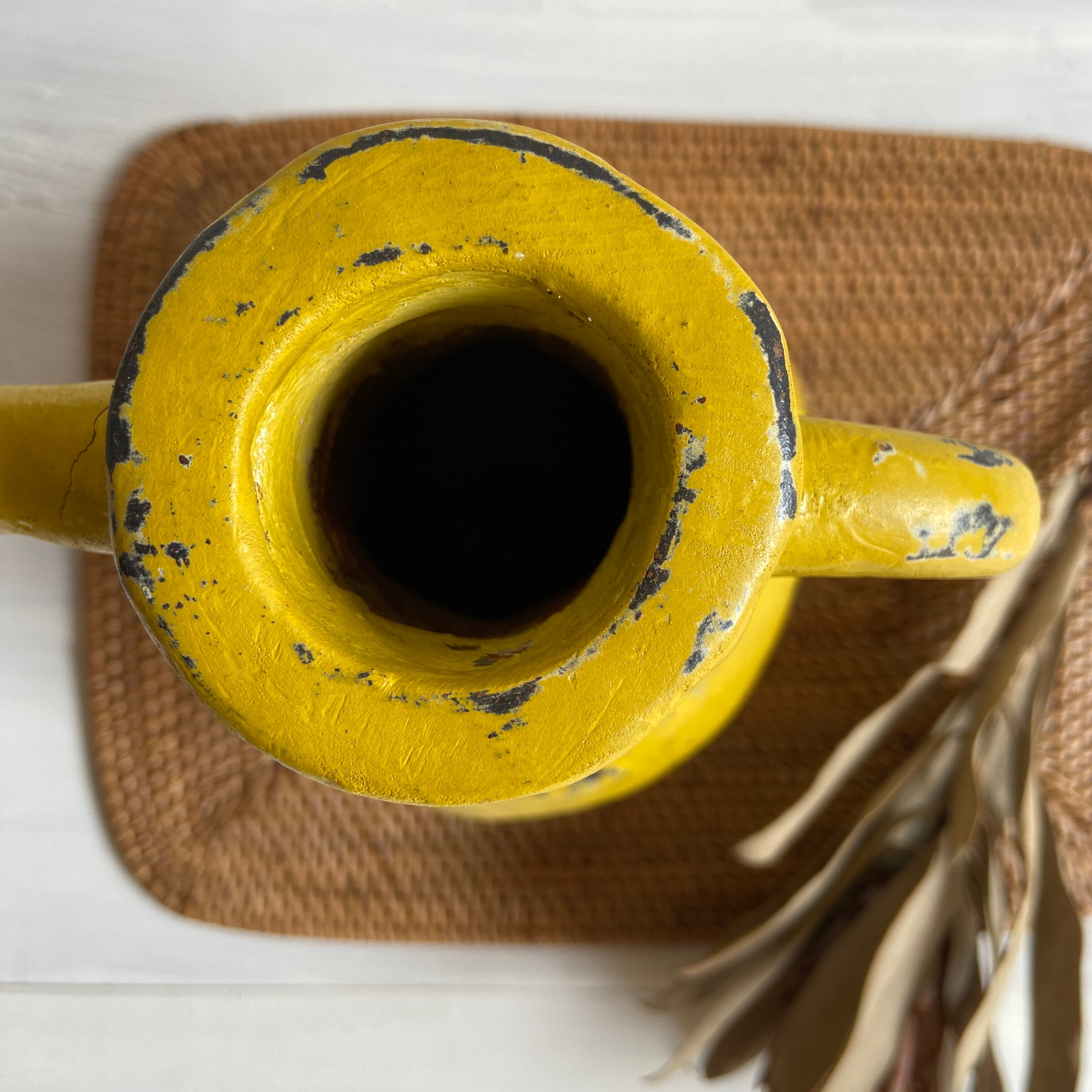 取手がチャームポイントのずっしり重いテラコッタ製のポットです。かわいいフォルムと黄色いカラーがお部屋のアクセントに。あなたのお部屋を飾ってくれます。そのまま置くだけでもお洒落ですが、ドライフラワーを飾ってもとっても素敵です。