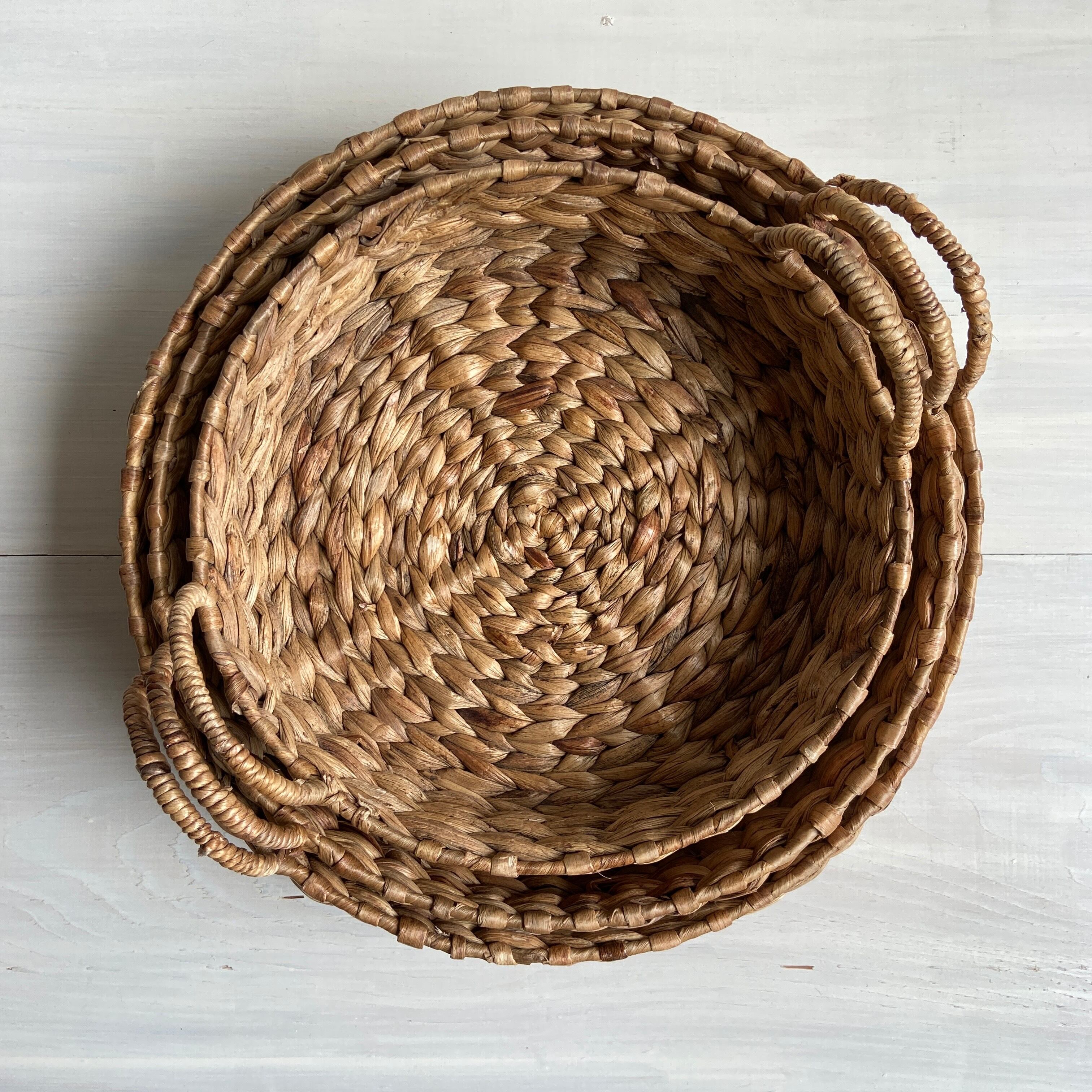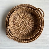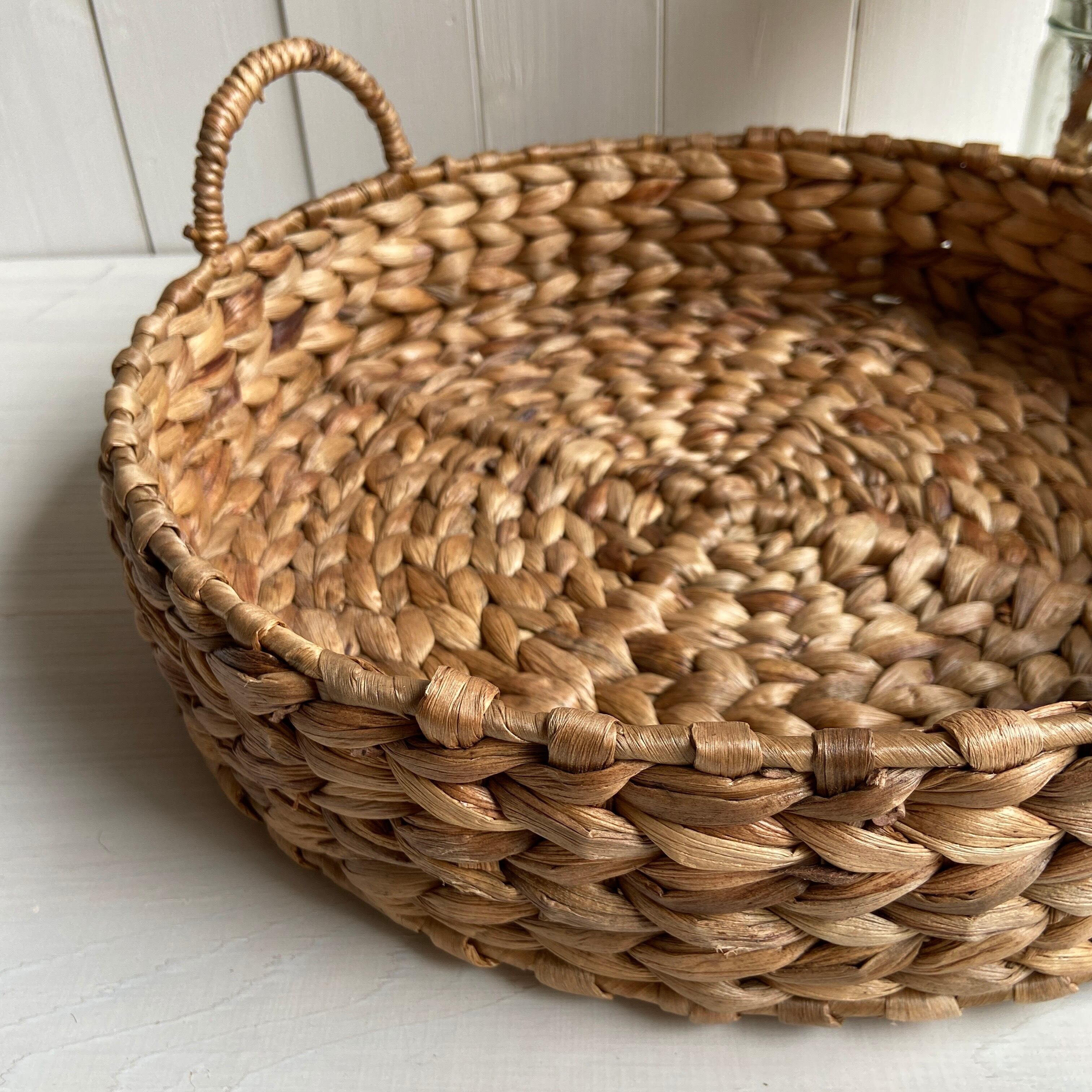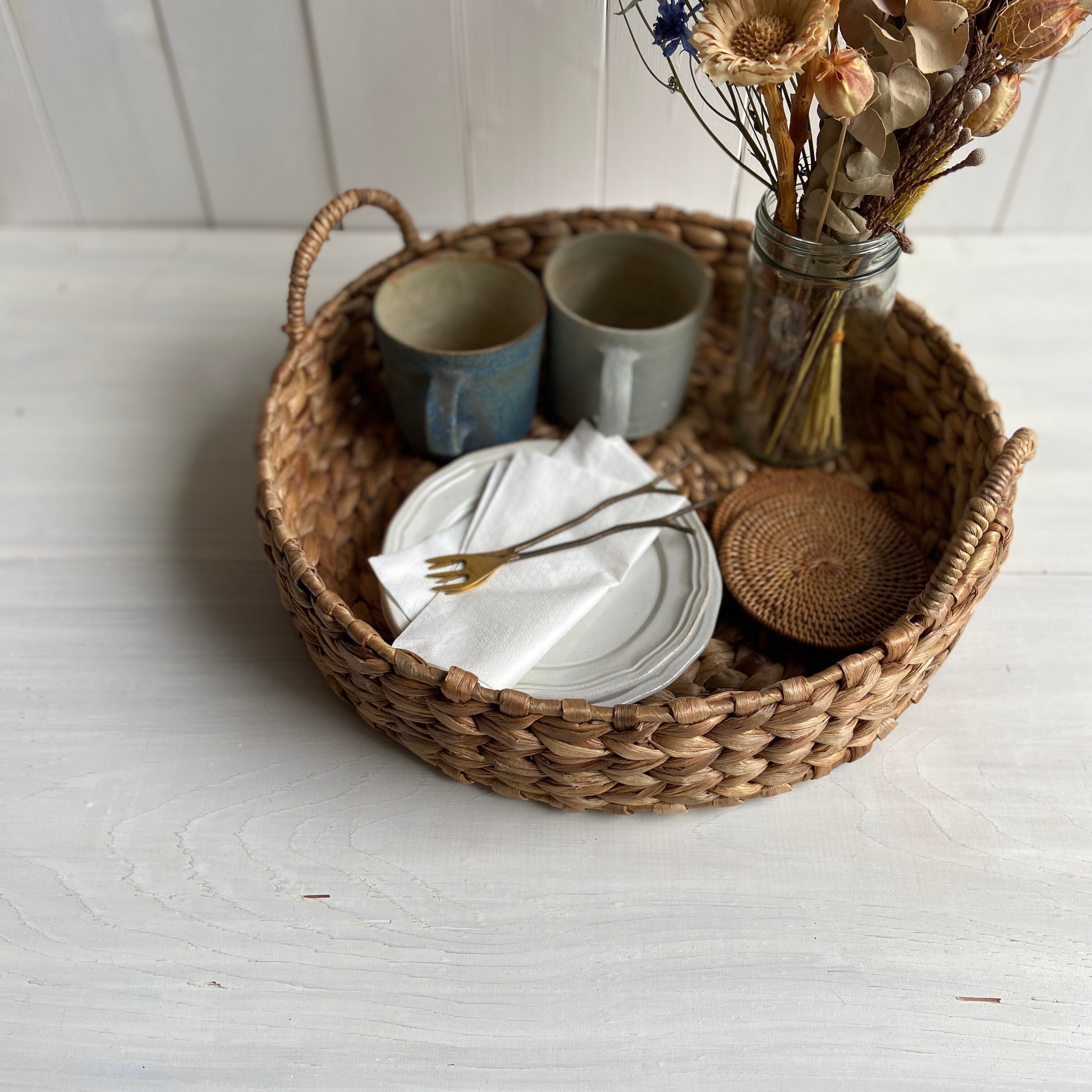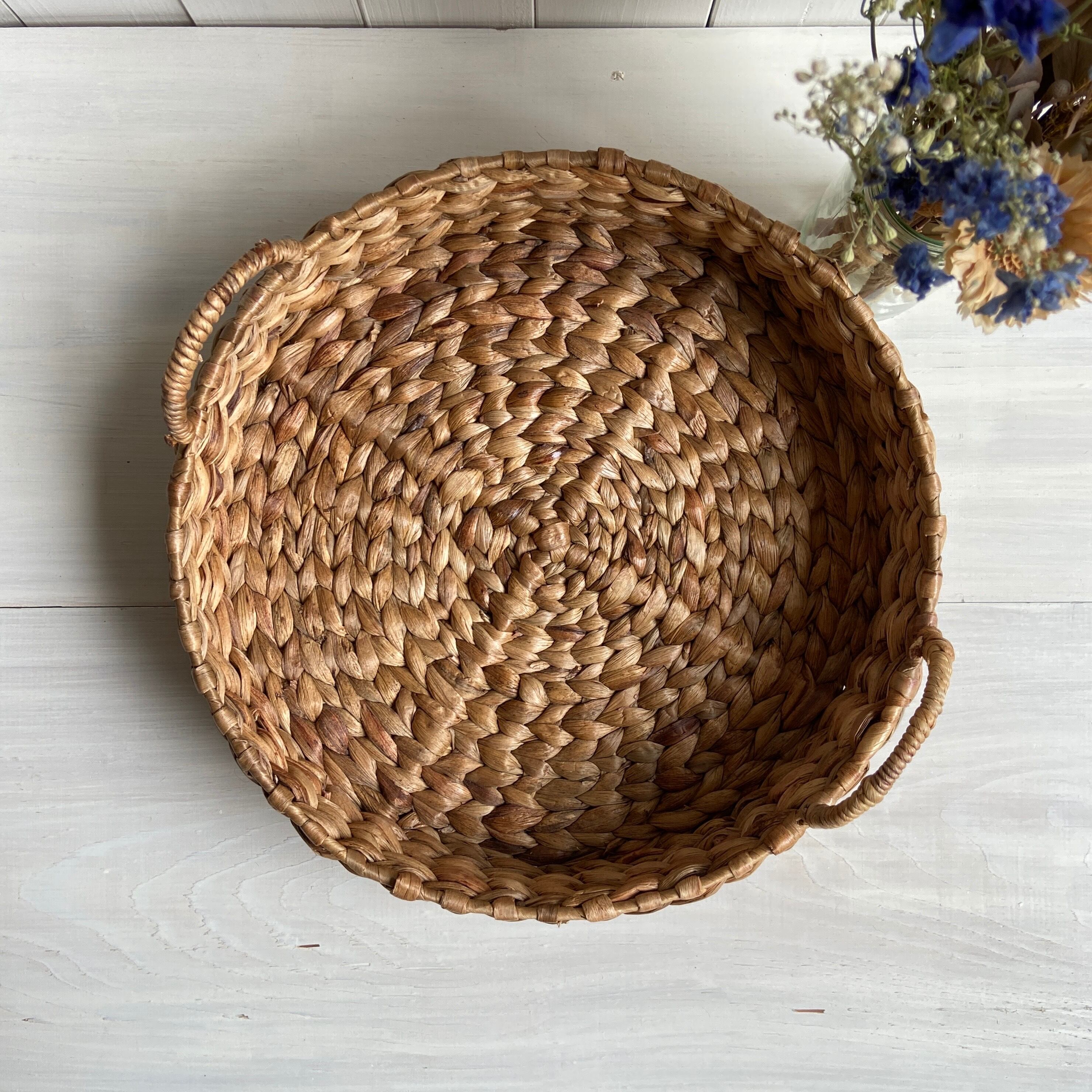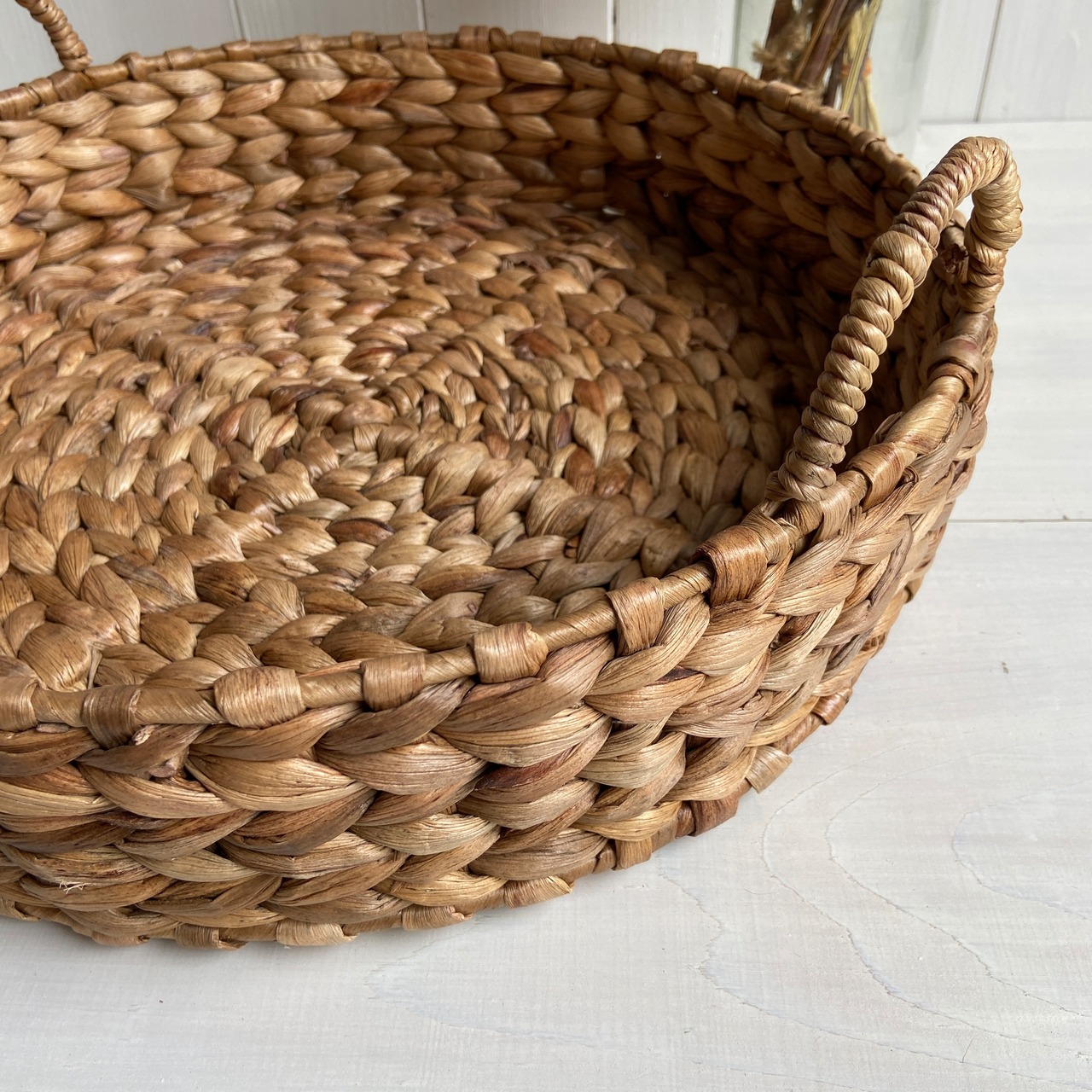 リビング、そしてプールサイドやアウトドアなど屋外でもオシャレに大活躍!ウォーターヒヤシンス(水草)をしっかり編んで仕上げたラウンドトレイ。