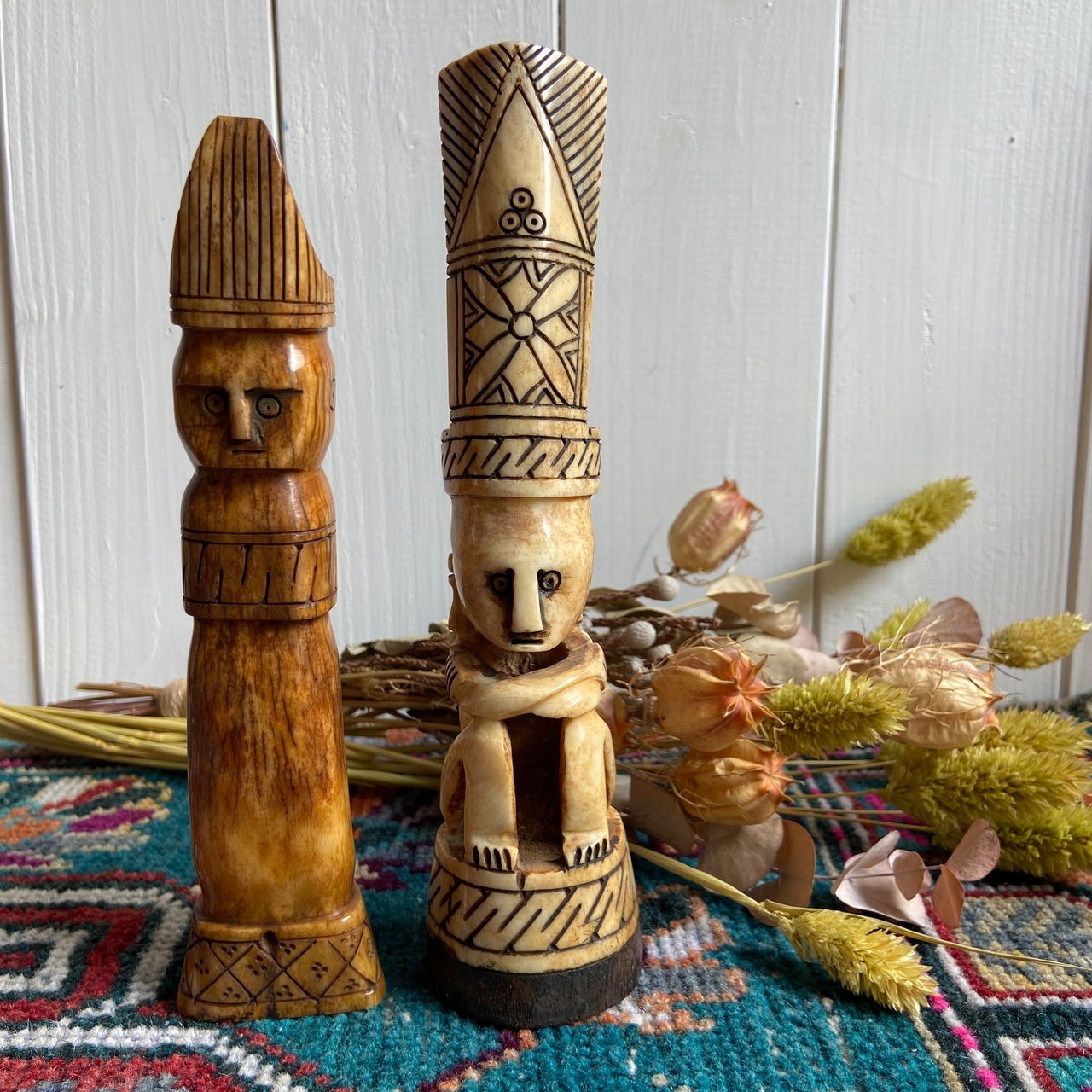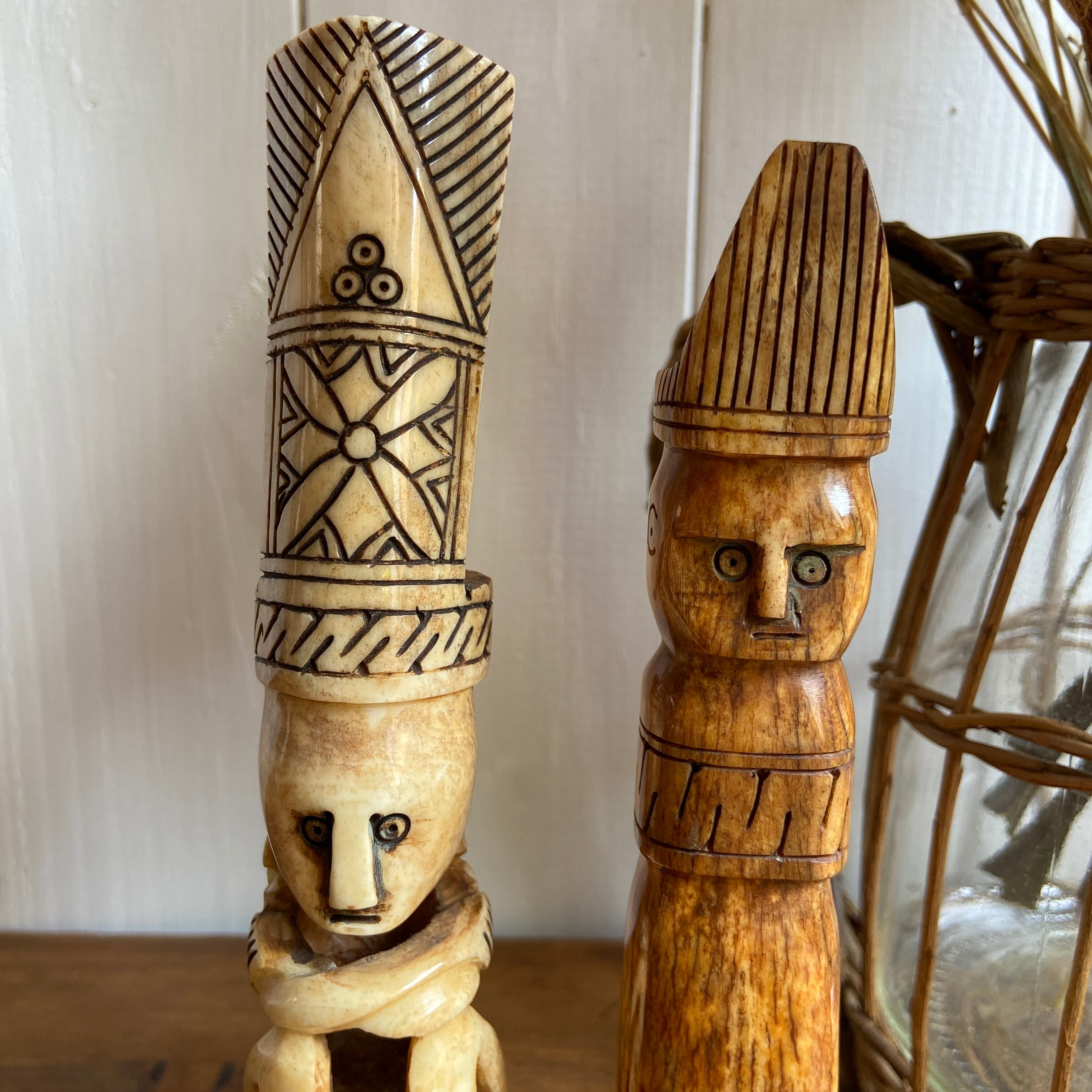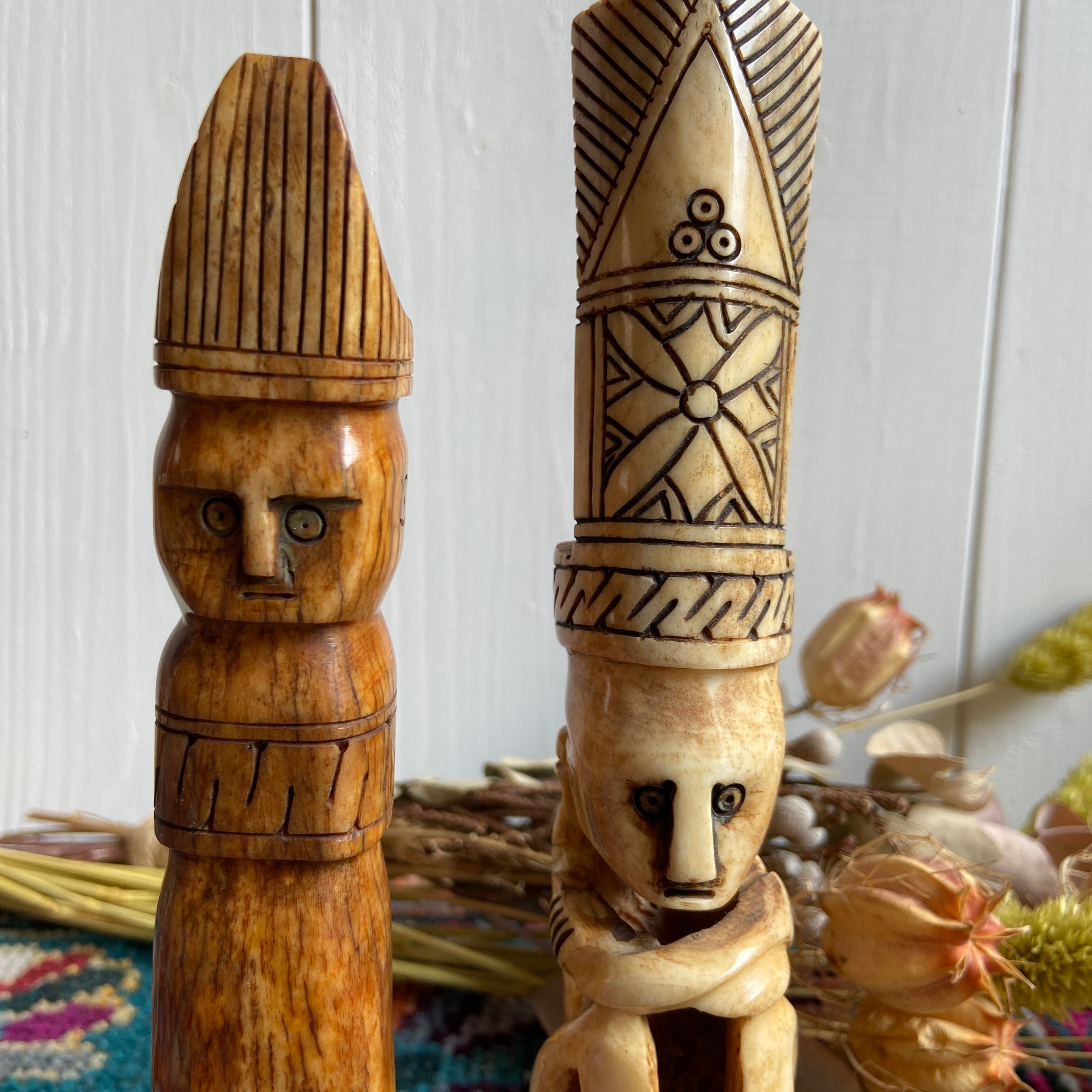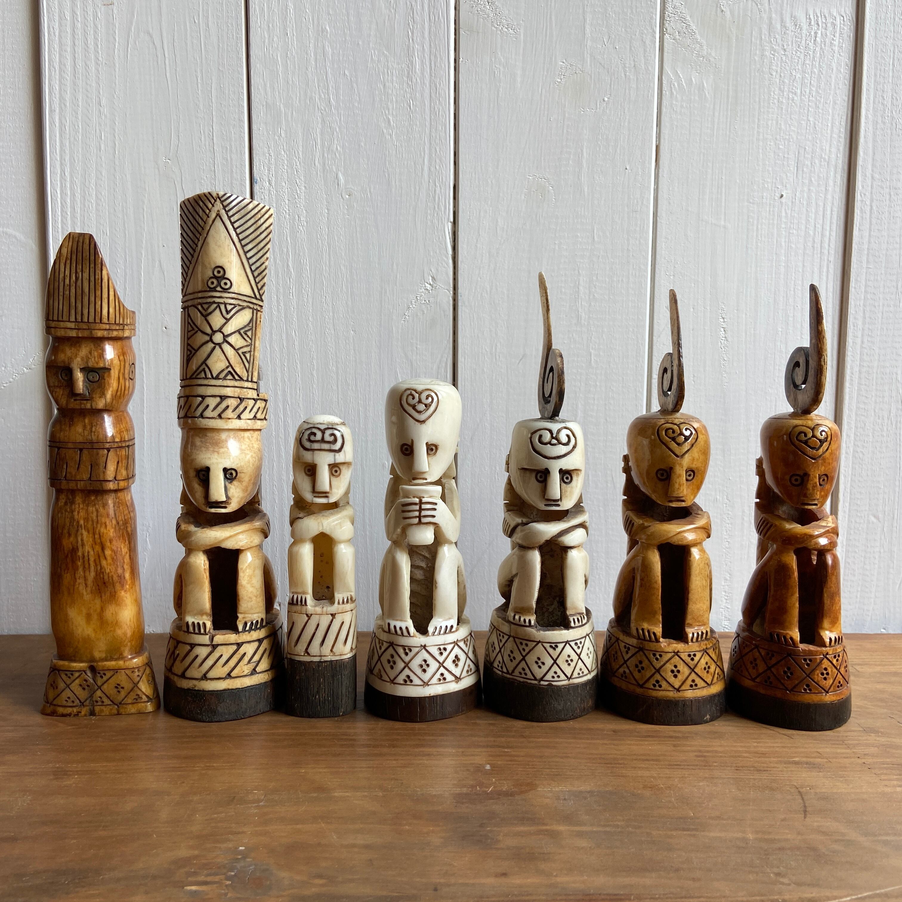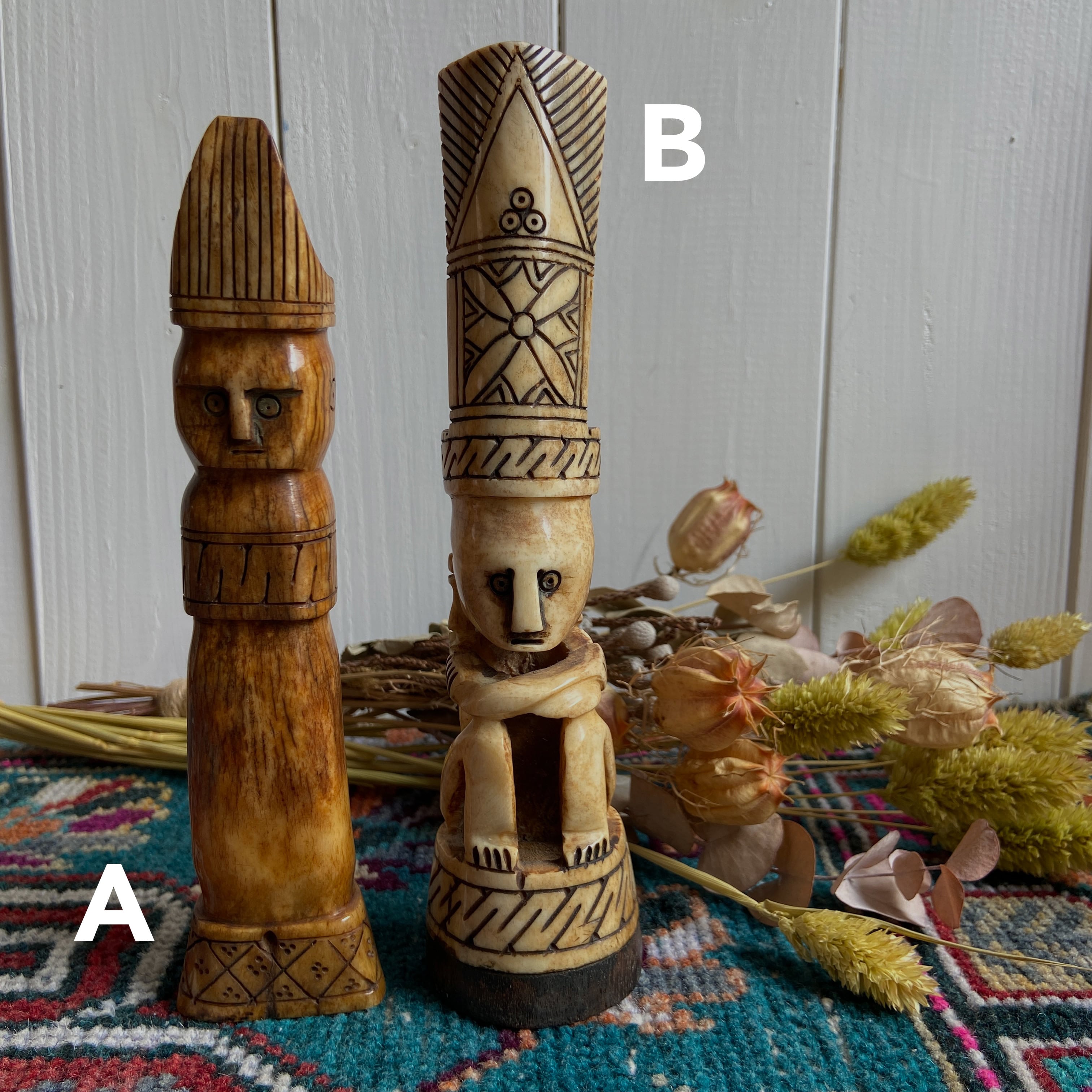 パプアに近いティモール島の神話と民間伝承の手彫りの人形。現地職人によって愛情を込めて彫刻された水牛の骨。1点ものです。