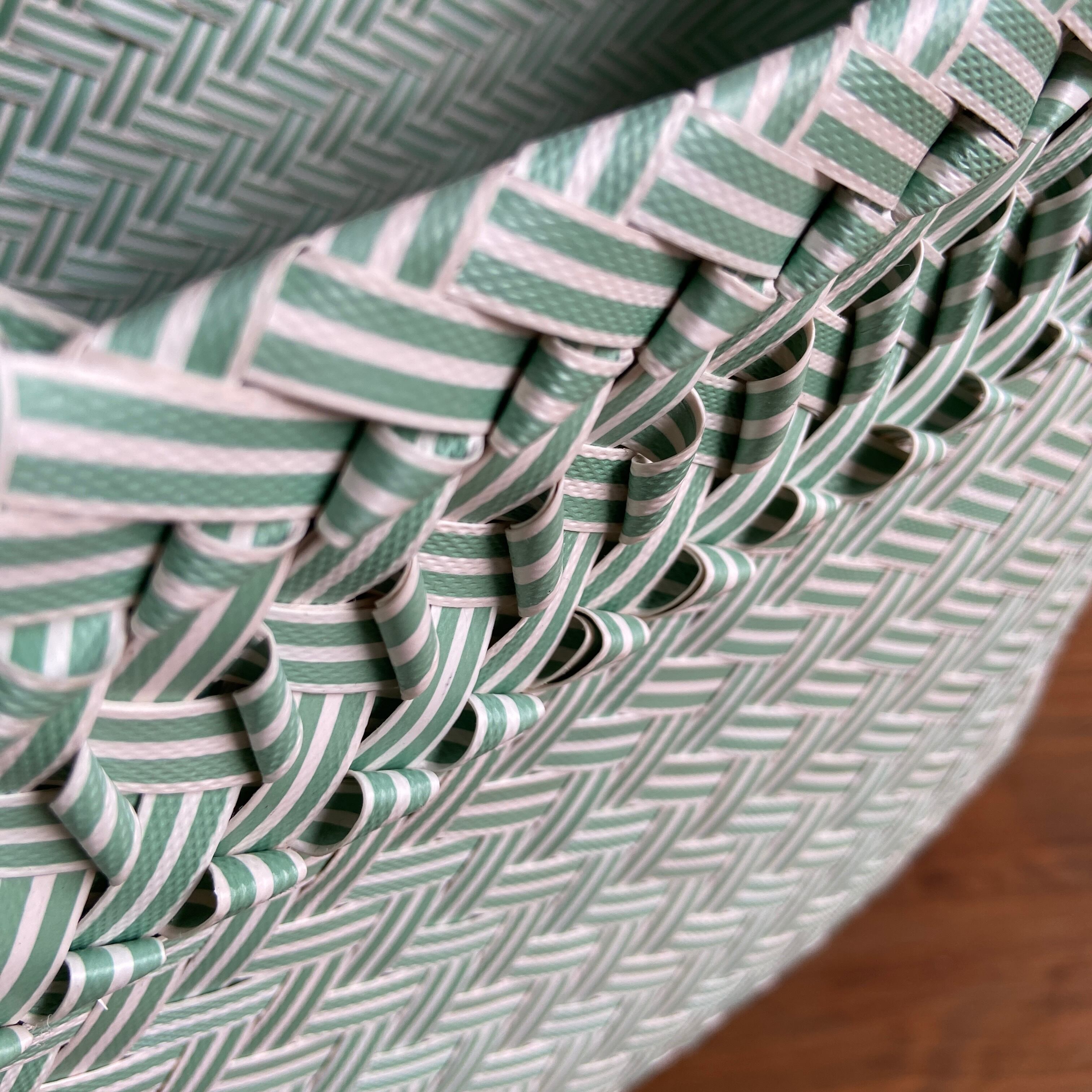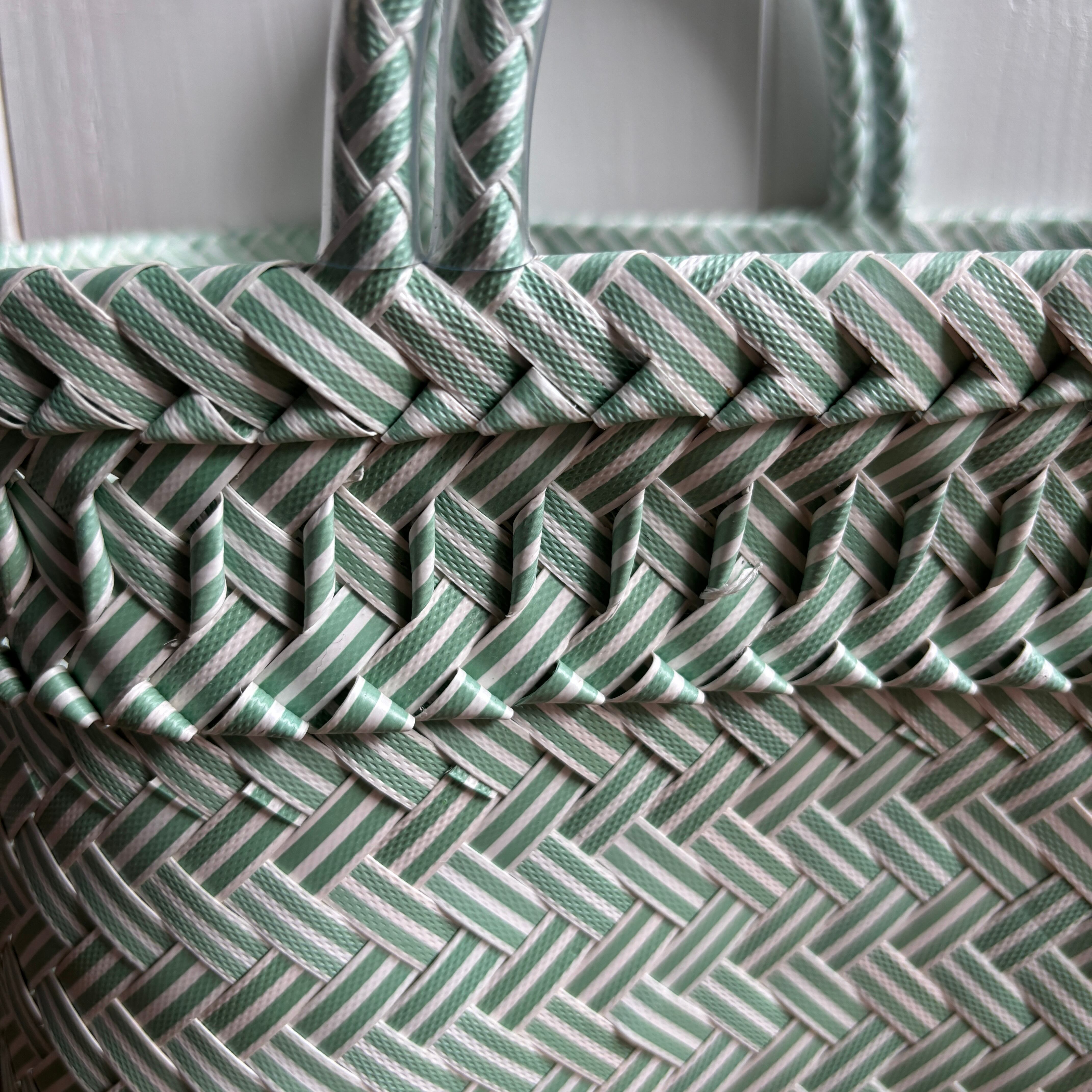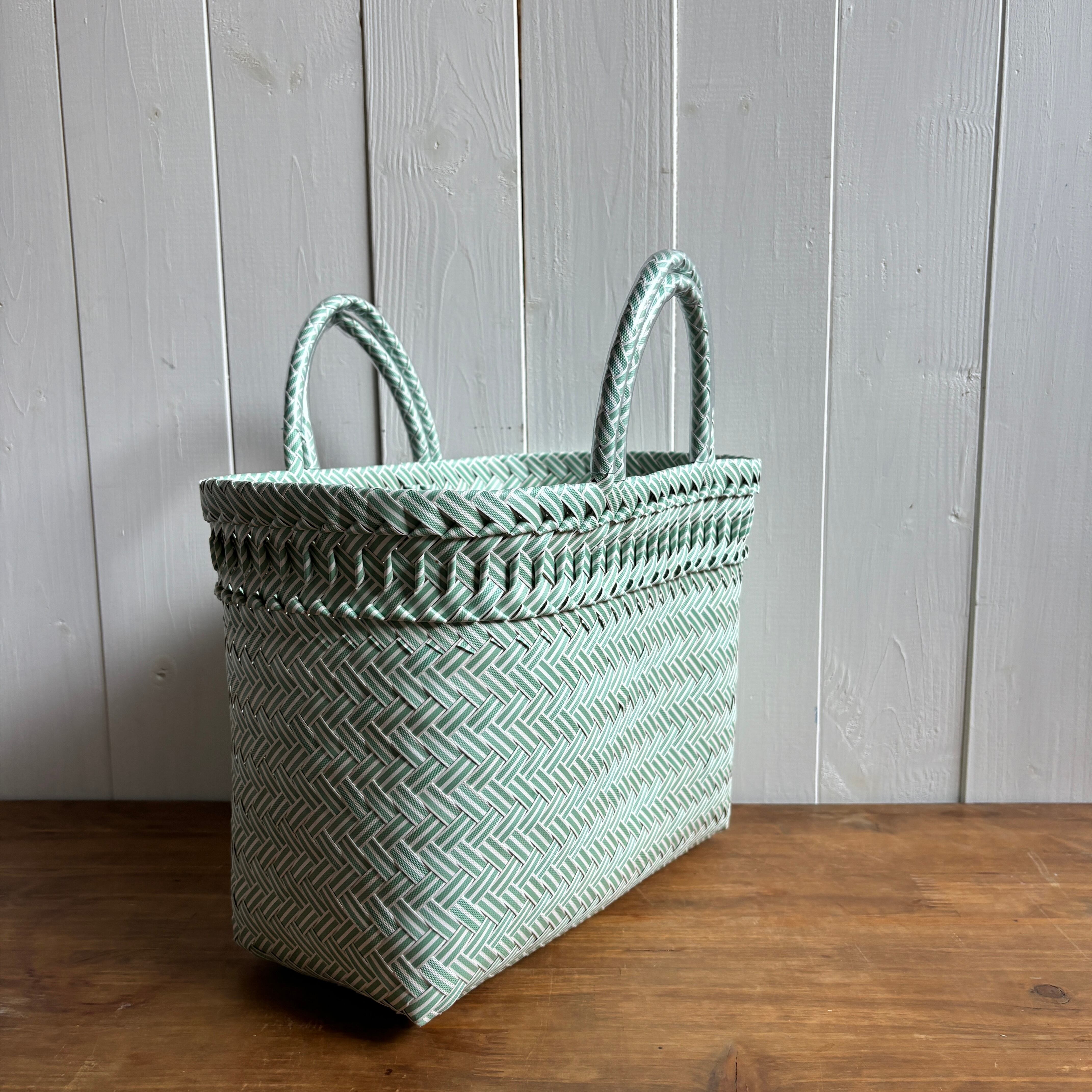 リサイクルテープを一つ一つ手作業で編み込んで作られたとにかく丈夫なエコバッグ。汚れたらタワシでゴシゴシ洗って♩普段のお買い物が楽しくなる、みんなにやさしいバッグです。